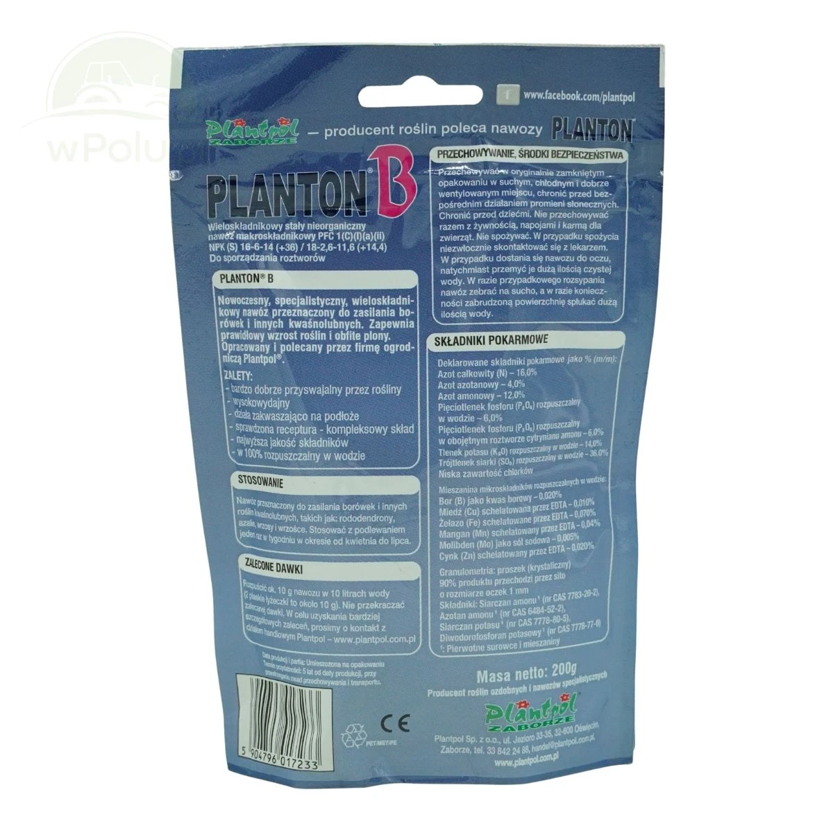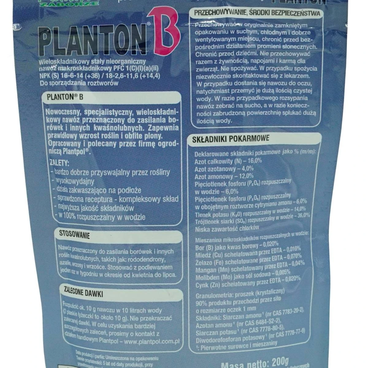 Planton B borówka to nowoczesny nawóz przeznaczony do borówek. Zapewnia on prawidłowy wzrost roślin i obfite plony, a także działa zakwaszająco, co jest korzystne dla wymienionych gatunków. Nawóz jest w pełni rozpuszczalny w wodzie, doskonale przyswajalny przez rośliny i ma sprawdzoną recepturę. Składniki pokarmowe zawarte w nawozie obejmują NPK 16+6+15 z dodatkiem mikroelementów pokarmowych, takich jak miedź, żelazo, mangan i cynk.