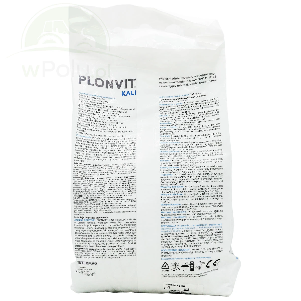 PLONVIT® KALIstosować w postaci roztworu wodnego o stężeniu 0,03–0,2% (0,3–2,0 kg nawozu w 1000 litrach pożywki gotowej do użytku).