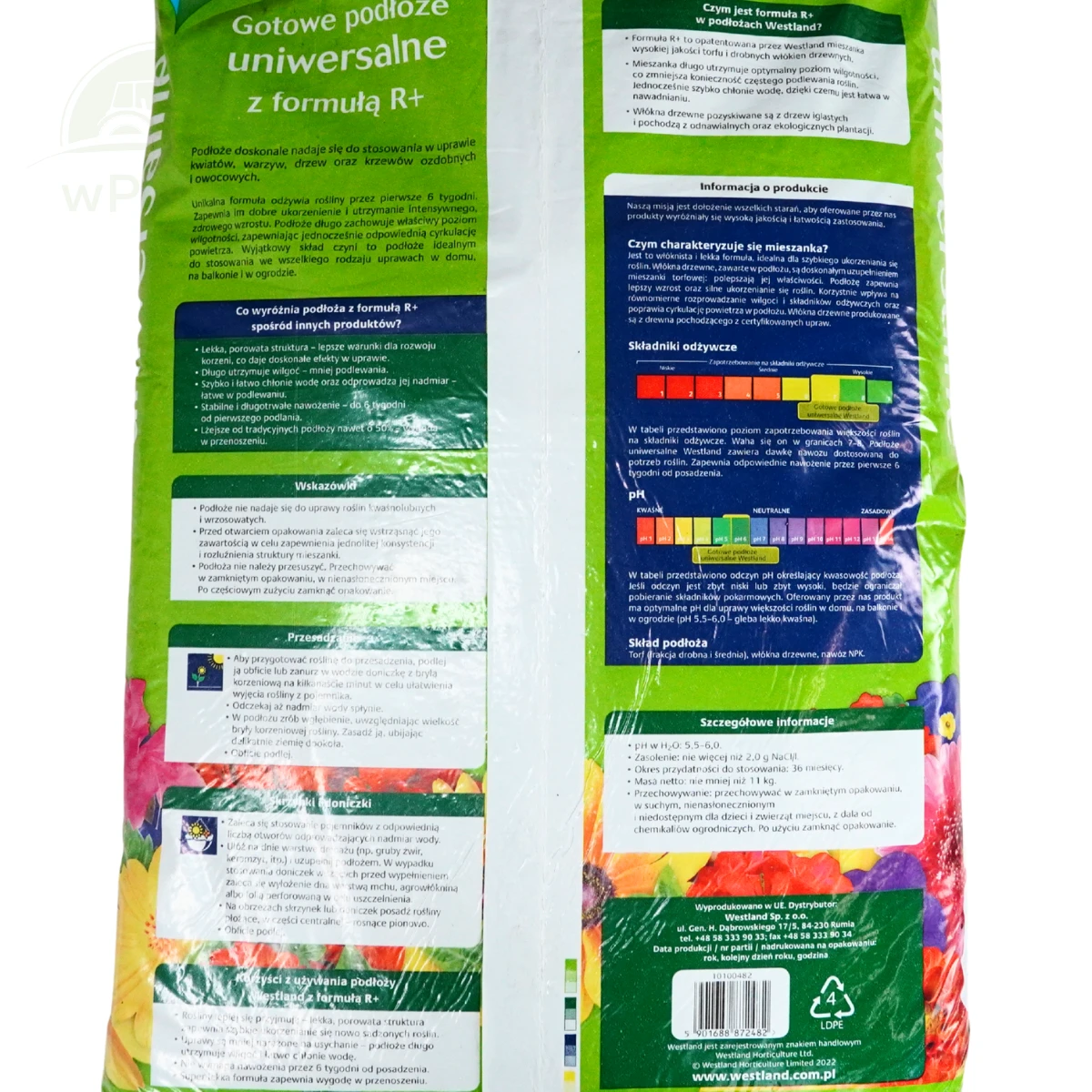 Formuła R+ to innowacyjna mieszanka wysokiej jakości torfu i drobnych włókien drzewnych, opatentowana przez Westland. Dzięki unikalnej strukturze podłoże utrzymuje optymalny poziom wilgotności przez dłuższy czas, co znacząco ogranicza potrzebę częstego podlewania. Jednocześnie szybko chłonie wodę, co ułatwia jego nawadnianie.