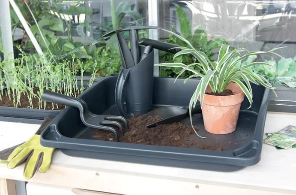Podstawka Respana Grow Tray może być używana do napełniania ziemią paletek rozsadowych, sadzenia i przesadzania roślin oraz do wysiewu nasion. Stosowanie podstawki jest bardzo wygodne, pozwala szybko i wygodnie przenosić się z pracą w dowolne miejsce, a dzięki specjalnym otworom i rowkom umożliwia przechowywanie narzędzi czy wysypywanie nasion.