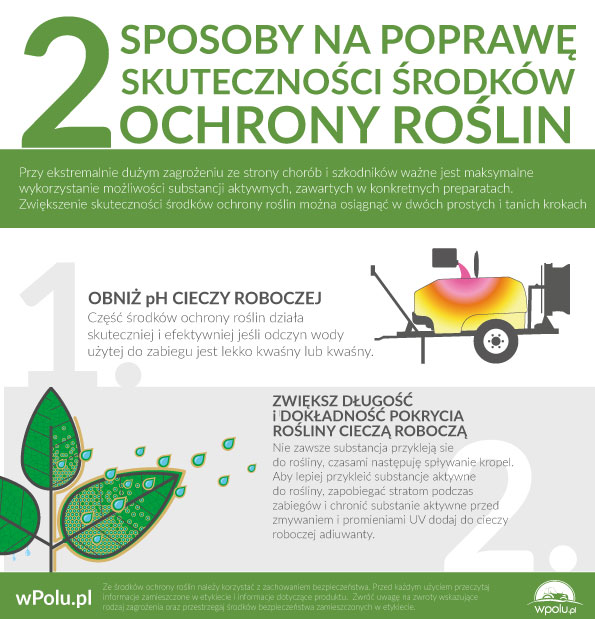 Biorąc pod uwagę obecnie występujące warunki: silną presję chorób grzybowych i zwiększone narażenie na zmywanie, zastosowanie preparatów modyfikujących ciecz roboczą może zwiększyć skuteczność ochrony i nawożenia dolistnego. Koszt stosowania tego typu produktów nie jest wysoki, a być może uda się w ten sposób zmniejszyć zsumowaną ilość zabiegów dokonanych w danym sezonie. Przed nami okres dojrzewania owoców, dokonywane teraz zabiegi mają kluczowy wpływ na jakość i wielkość plonów.