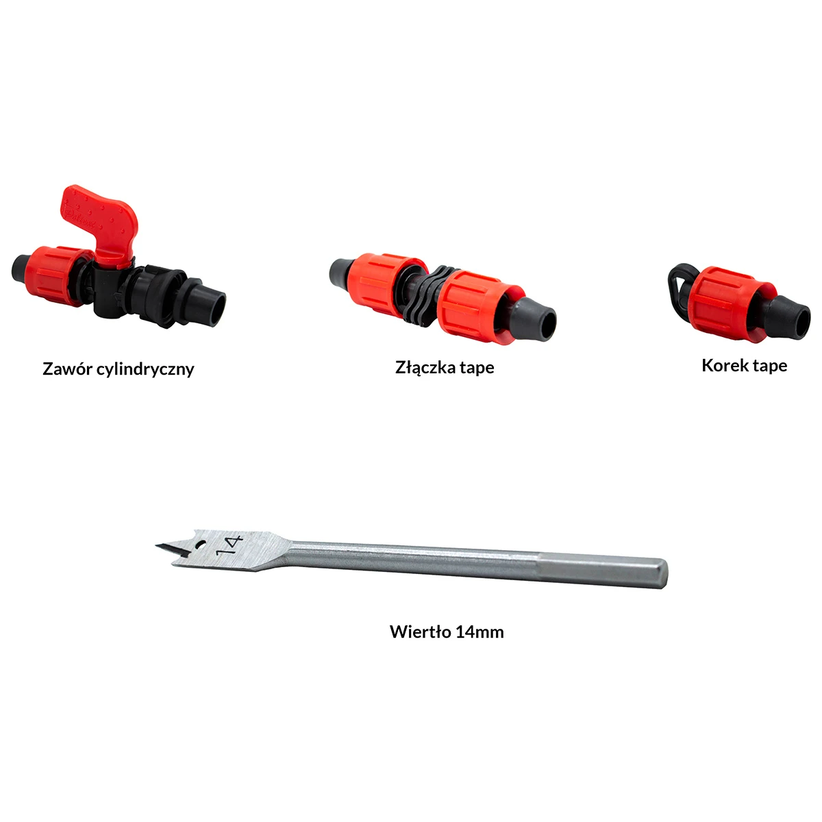 Zestaw przeznaczony do instalacji systemu nawodnieniowego w domowym ogródku zwłaszcza na plantacje krótko terminowe