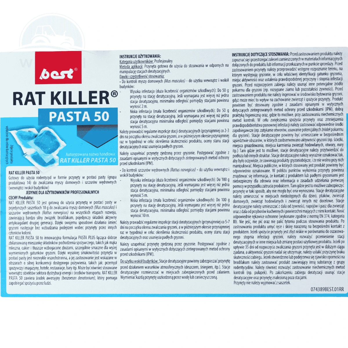 Gotowy do użycia środek na gryzonie w formie przynęty – pasty w pojedynczych saszetkach o wadze 10 g. Zwalcza myszy (Mus musculus) i szczurów (Rattus norvegicus) na wszystkich etapach ich rozwoju. Przynęta może być stosowana zarówno wewnątrz, jak i wokół budynków, także publicznych i przemysłowych.