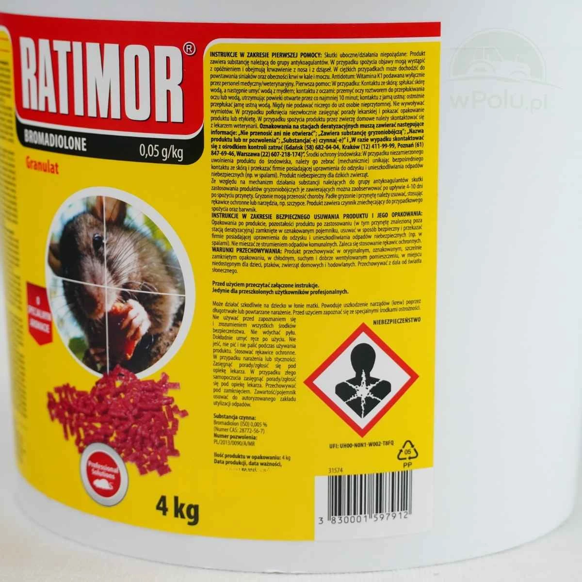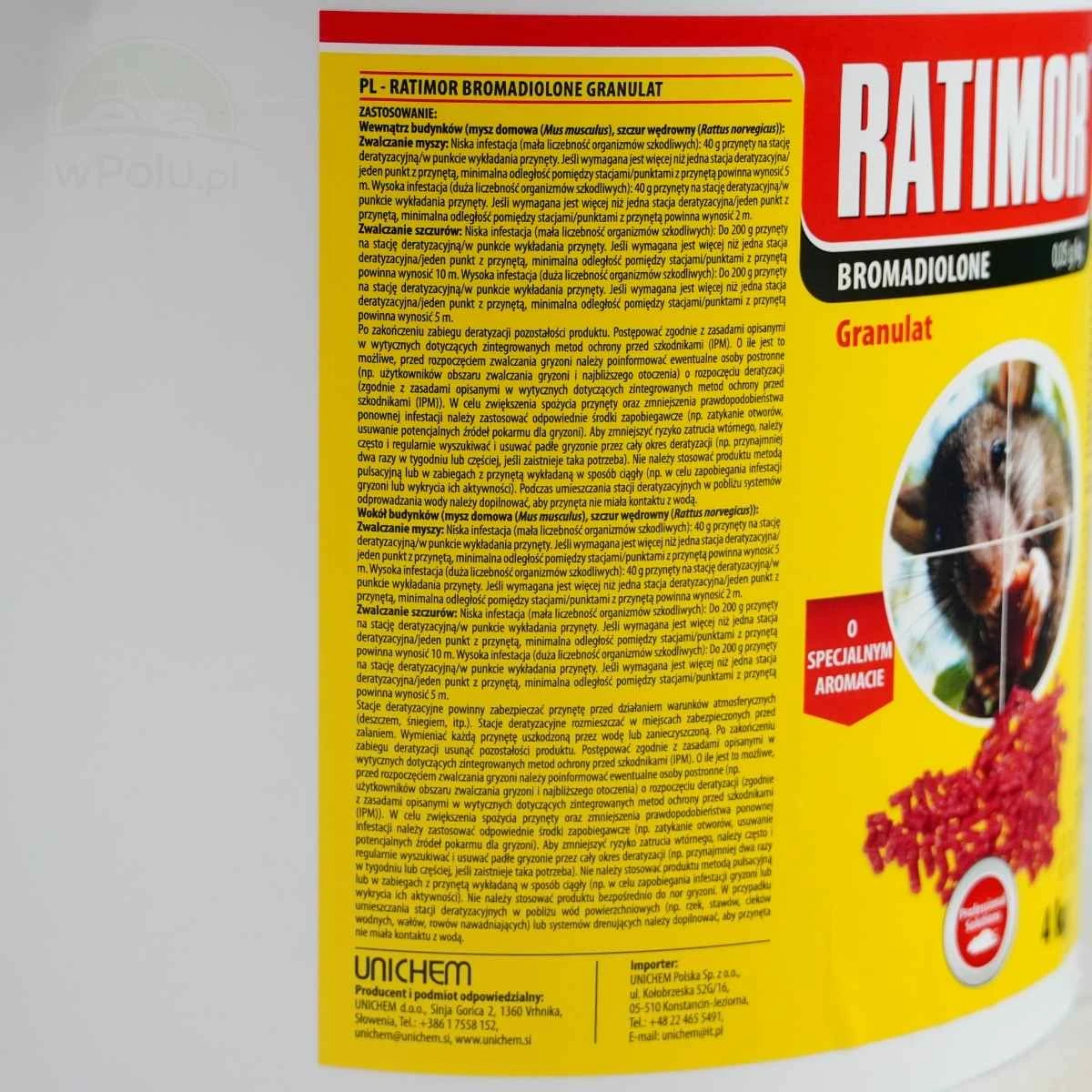 Ratimor Bromadiolone Granulat to specjalistyczny preparat gryzoniobójczy w postaci skutecznego granulatu, przeznaczony do zwalczania myszy i szczurów. Produkt zawiera bromadiolon w stężeniu 0,005%, należący do antykoagulantów drugiej generacji, charakteryzujących się wysoką efektywnością działania. Środek stosuje się w pomieszczeniach, w których obecność gryzoni powoduje zagrożenia sanitarne lub straty gospodarcze. Dzięki atrakcyjnej dla gryzoni formulacji granulat jest chętnie pobierany, co przekłada się na skuteczne ograniczanie populacji w profesjonalnych działaniach deratyzacyjnych.