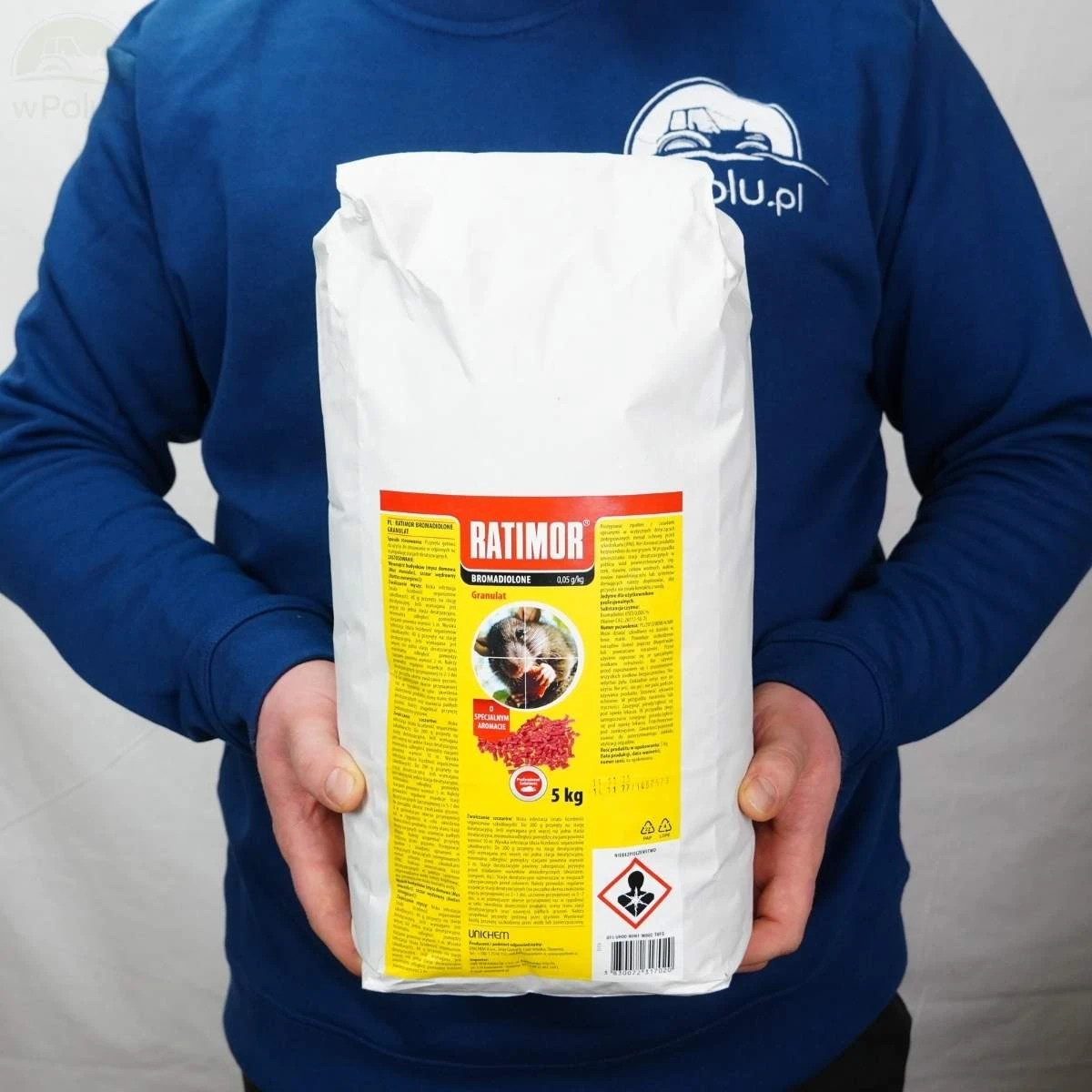 Ratimor Bromadiolone granulat to profesjonalna trutka na myszy i szczury w formie granulatu o wysokiej skuteczności działania. Preparat zawiera substancję czynną bromadiolon 0,005%, należącą do antykoagulantów drugiej generacji. Środek jest przeznaczony do zwalczania populacji gryzoni w pomieszczeniach, w których ich obecność stwarza zagrożenie sanitarne lub gospodarcze. Granulat jest chętnie pobierany przez gryzonie, co czyni go skutecznym narzędziem w profesjonalnej deratyzacji.
