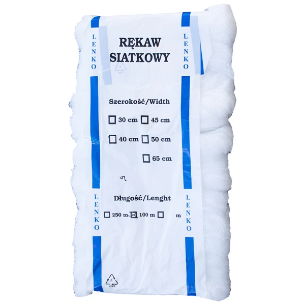 Rękaw dziany o diamentowym splocie polskiego producenta Lenko przeznaczony jest do automatycznego pakowania owoców i warzyw oraz innych produktów. Rękawy dziane oferowane są w szerokiej gamie kolorów o różnych szerokościach.