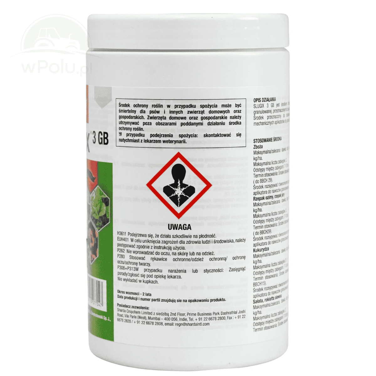 Pełne stosowanie znajdziesz w etykiecie środka ochrony roślin Slugix 3 GB poniżej.
