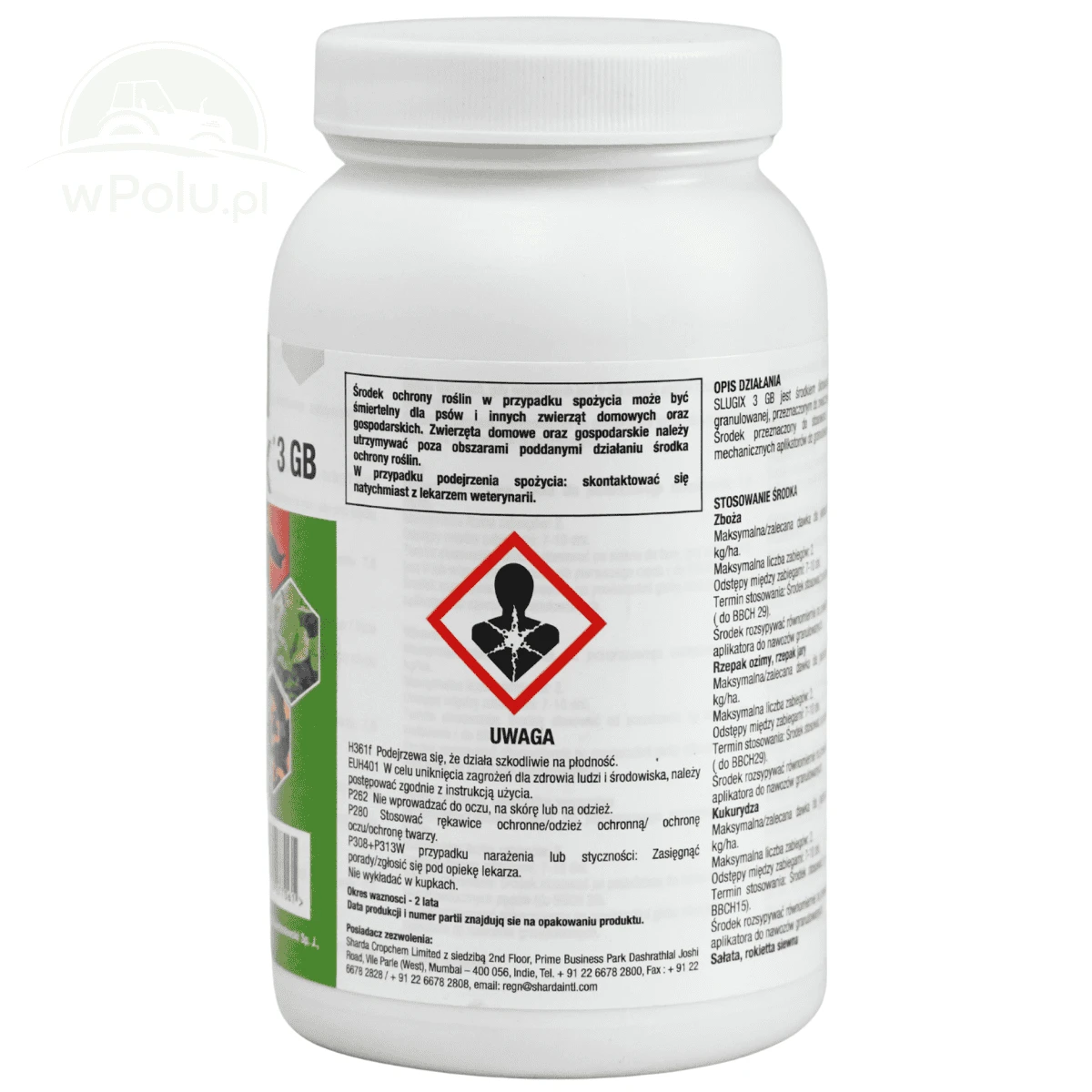 Pełne stosowanie znajdziesz w etykiecie środka ochrony roślin Slugix 3 GB poniżej.