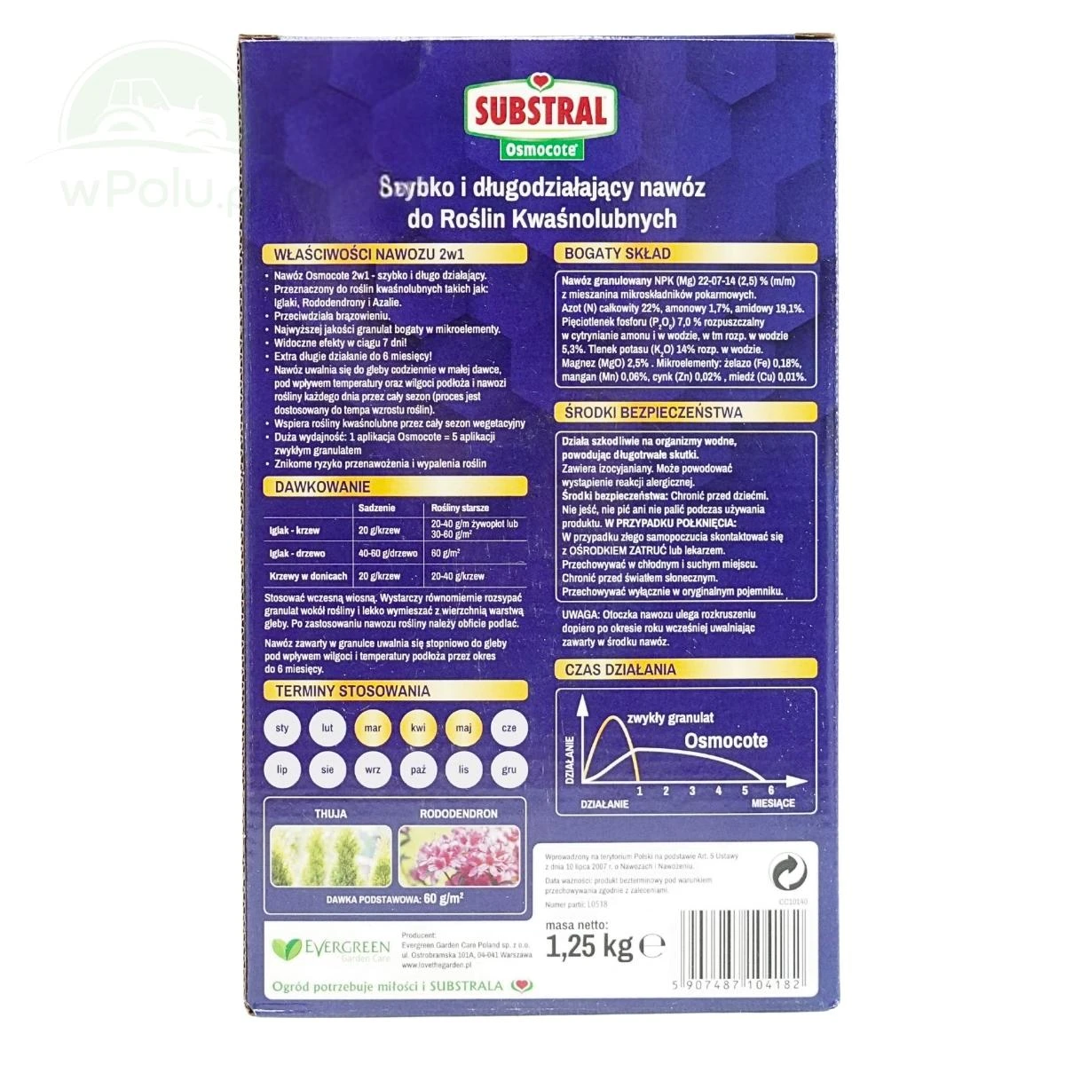 Opakowanie 1,25 kg może wystarczyc do nawożenia nawet 62 krzewów iglastych.