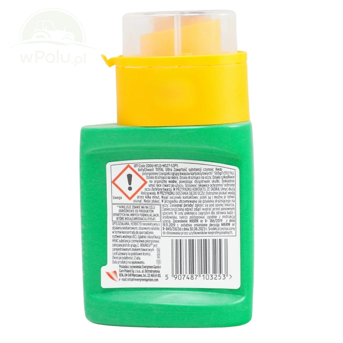 Roundup AntyChwast Total Ultra to zaawansowany, naturalny środek chwastobójczy o działaniu kontaktowym, przeznaczony do stosowania nalistnie. Formuła koncentratu umożliwia łatwe przygotowanie roztworu wodnego, a jego skład oparty na 100% naturalnych substancjach aktywnych gwarantuje biodegradowalność w glebie. Produkt jest wolny od glifosatu, co czyni go bezpiecznym dla środowiska. Preparat niszczy nadziemne części chwastów, które znajdują się we wczesnym etapie rozwoju (do 10 cm wysokości). Skutecznie eliminuje takie chwasty jak dymnica pospolita, gwiazdnica pospolita, jasnota purpurowa, komosa biała, maruna bezwonna, mlecz zwyczajny, przetacznik bluszczykowaty, rdest plamisty, rumianek bezpromieniowy inne.