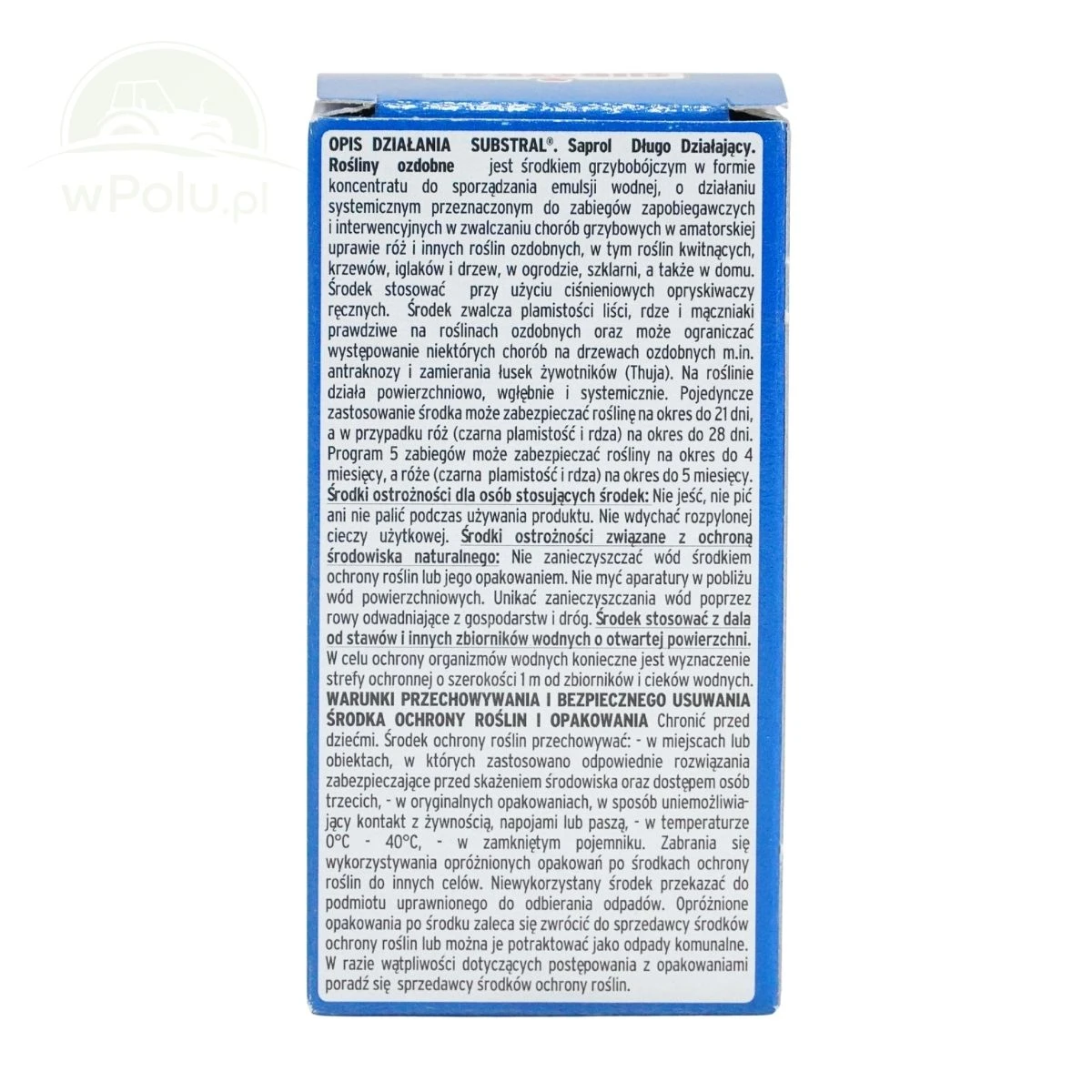 Saprol to fungicyd w formie koncentratu przeznaczony do ochrony roślin ozdobnych przed chorobami grzybowymi. Produkt zwalcza m.in. plamistość liści, rdze i mączniaki prawdziwe. Ogranicza występowanie antraknozy i zamierania łusek żywotników. Najlepiej stosować kwiecień-październik. Charakteryzuje się działaniem systemicznym, przenikając do wnętrza rośliny i działając przez minimum 3 tygodnie. Jest odporny na wymywanie przez deszcz. Stosuje się go, używając opryskiwaczy ciśnieniowych. Należy stosować z zachowaniem bezpieczeństwa i przeczytać informacje na etykiecie przed użyciem.