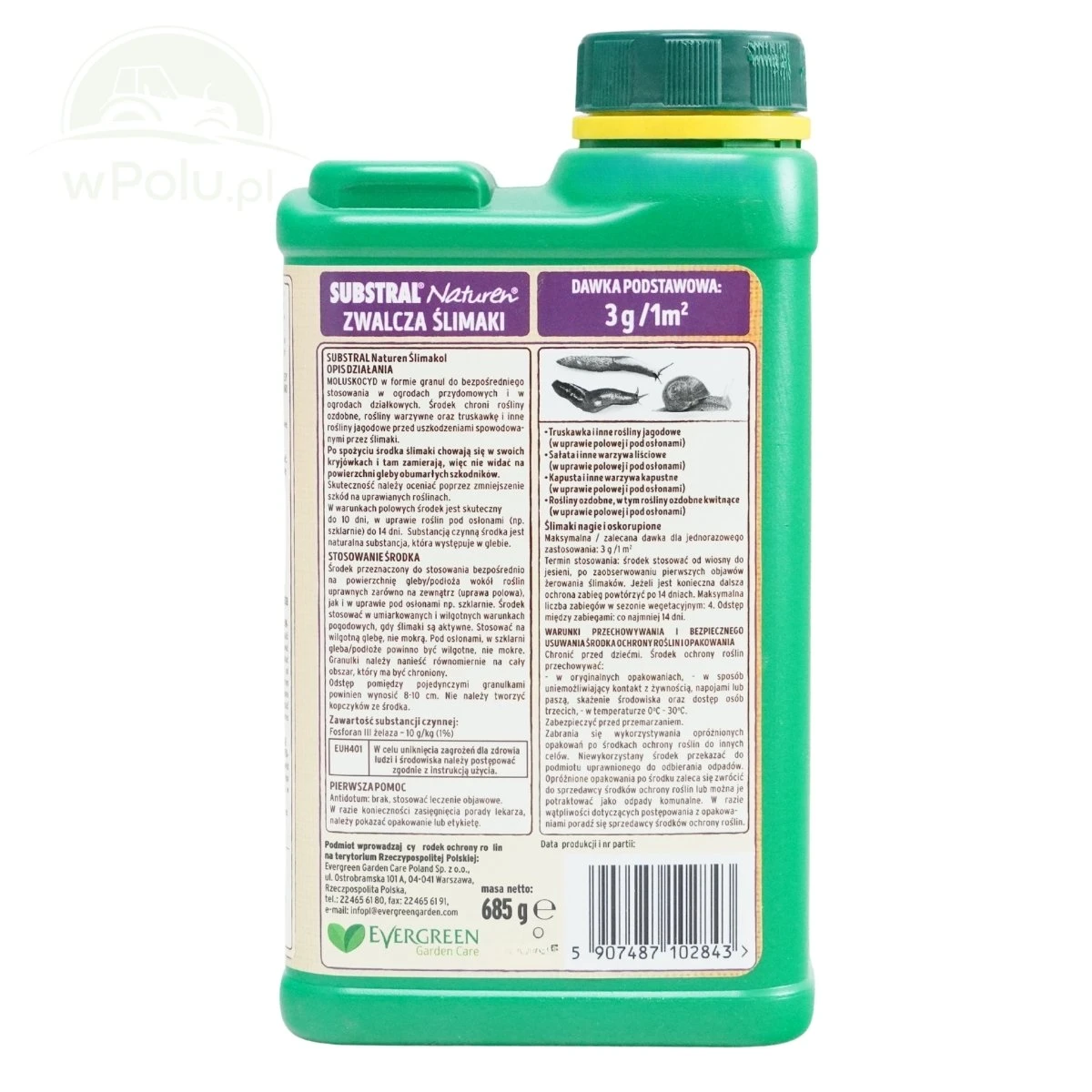 Ślimakol Naturen to produkt przeznaczony do zwalczania ślimaków ogrodowych. Jest skuteczny zarówno przeciw ślimakom nagim, jak i tym z muszlą. Po spożyciu preparatu przez ślimaki następuje ich odrętwienie, a następnie giną one w wyniku odwodnienia. Jest to produkt naturalny, więc jego stosowanie jest bezpieczne dla innych organizmów ogrodowych, takich jak owady czy zwierzęta domowe. Idealnie nadaje się do ochrony roślin ozdobnych oraz upraw warzywnych i owocowych w ogrodach przydomowych i działkowych oraz upraw pod osłonami. Najlepiej stosować od wiosny do jesieni, kiedy ślimaki są najbardziej aktywne.