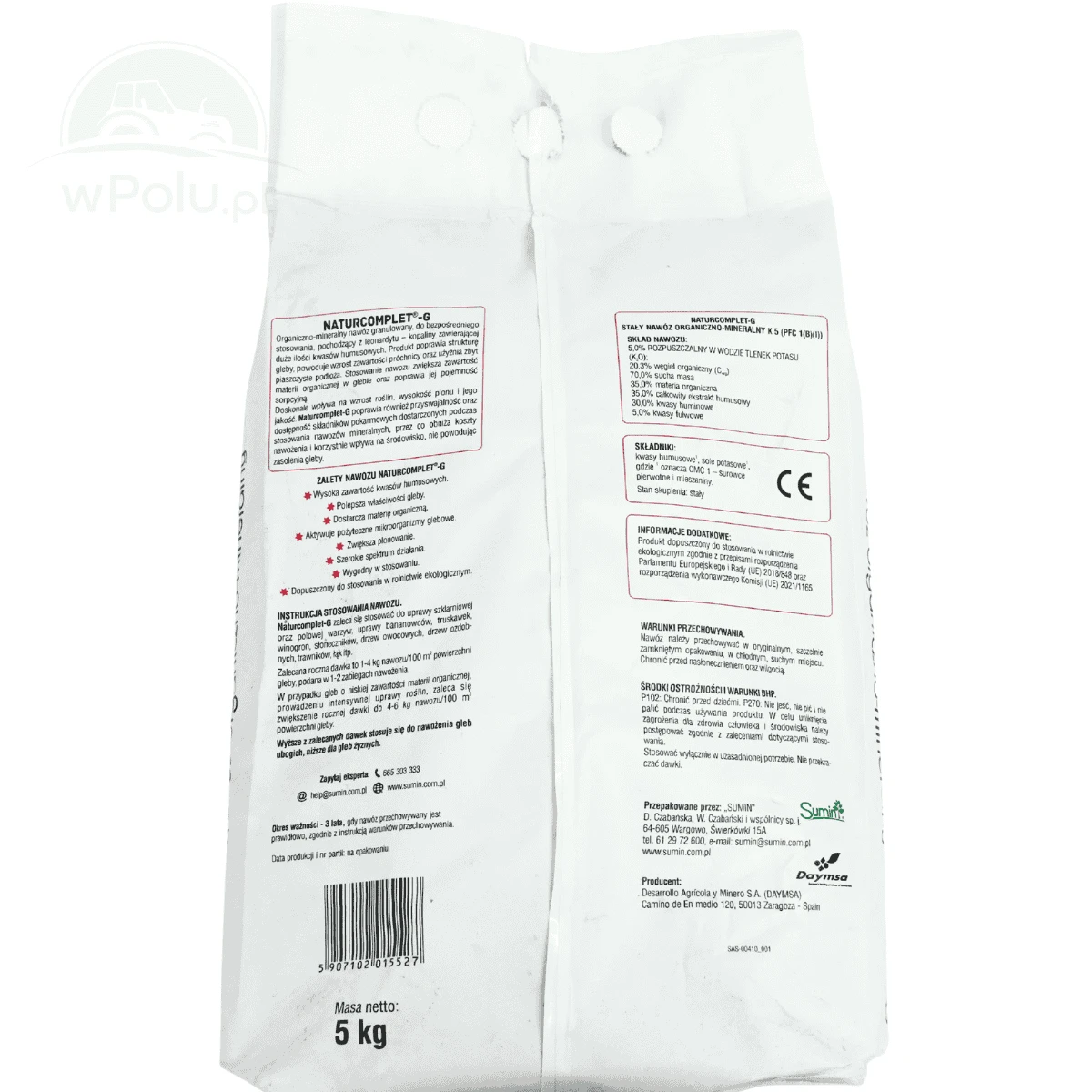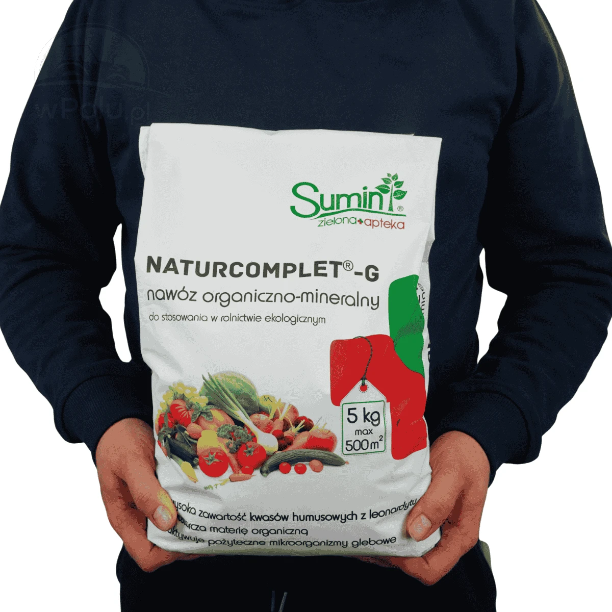 Kluczowym składnikiem nawozu jest leonardyt – naturalny minerał pozyskiwany z kopalni węgla brunatnego, bogaty w kwasy humusowe, które zwiększają dostępność składników odżywczych, poprawiają strukturę gleby i wspomagają rozwój pożytecznych mikroorganizmów. Dzięki unikalnym właściwościom, Naturcomplet-G wzmacnia odporność roślin, wspiera ich plonowanie i zapewnia długotrwałe korzyści dla gleby, będąc jednocześnie bezpiecznym dla środowiska i dopuszczonym do rolnictwa ekologicznego.