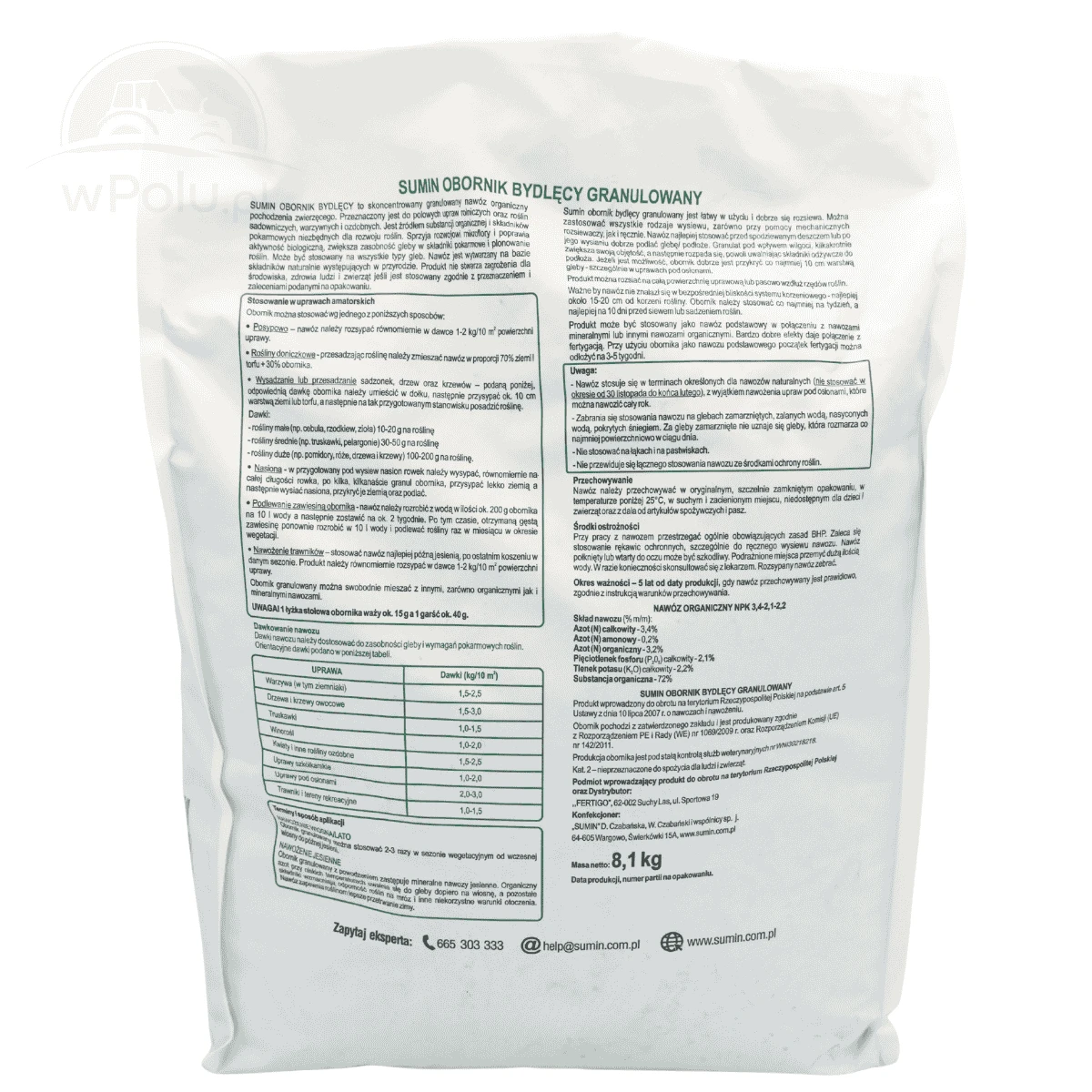 Obornik bydlęcy sprzyja rozwojowi mikroflory i poprawia aktywność biologiczną, zwiększa zasobność gleby w składniki pokarmowe i plonowanie roślin. Nawóz jest wytwarzany na bazie składników naturalnie występujących w przyrodzie. Produkt nie stwarza zagrożenia dla środowiska, zdrowia ludzi i zwierząt, jeśli jest stosowany zgodnie z przeznaczeniem i zaleceniami podanymi na opakowaniu.