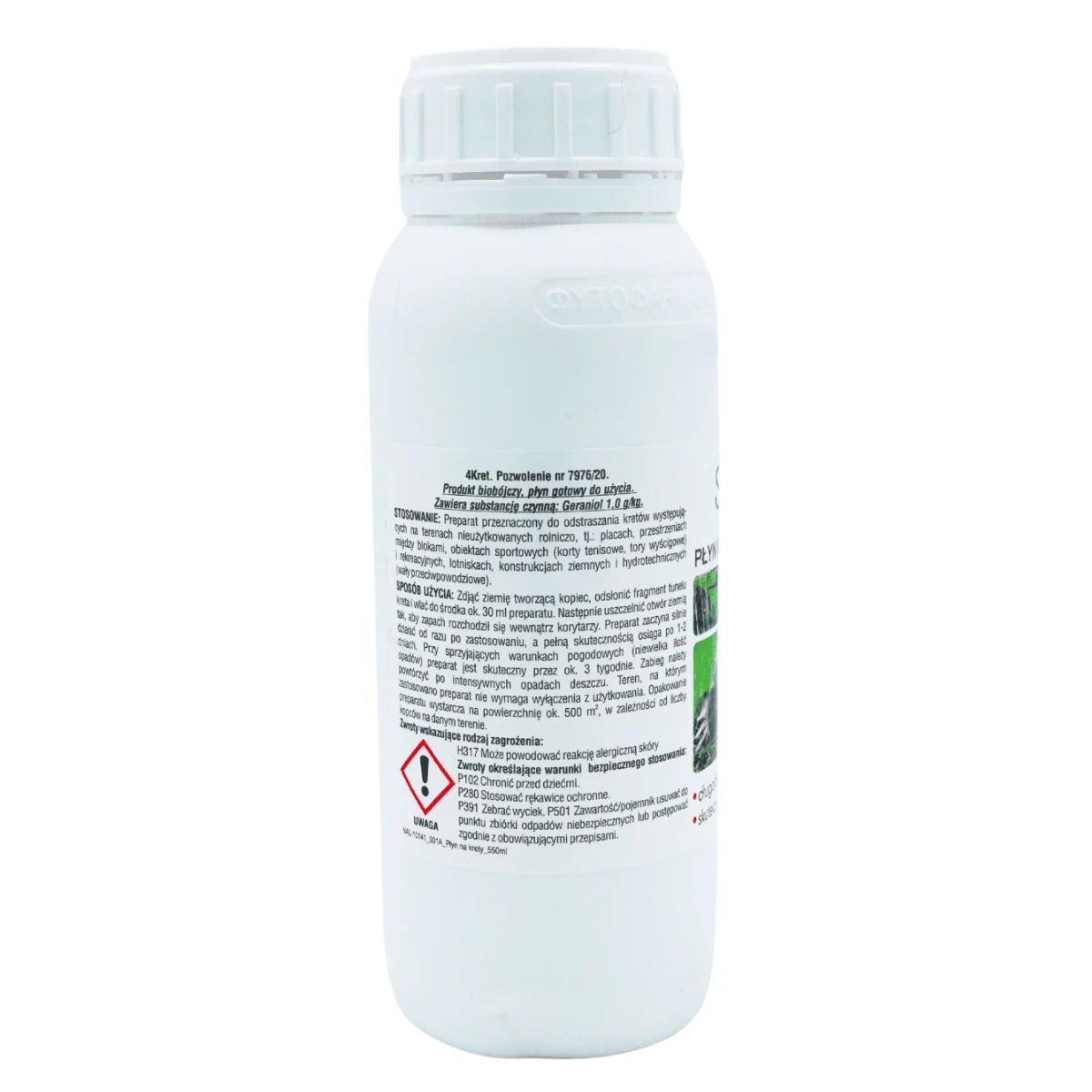 Wysoko wydajny gotowy płyn o silnym zapachu skutecznie odstraszający krety na nieużytkowanych rolniczo terenach. Działa od razu po zastosowaniu, a pełną skutecznością preparat osiąga efekt już po 1-2 dniach od momentu aplikacji na kretowiska.