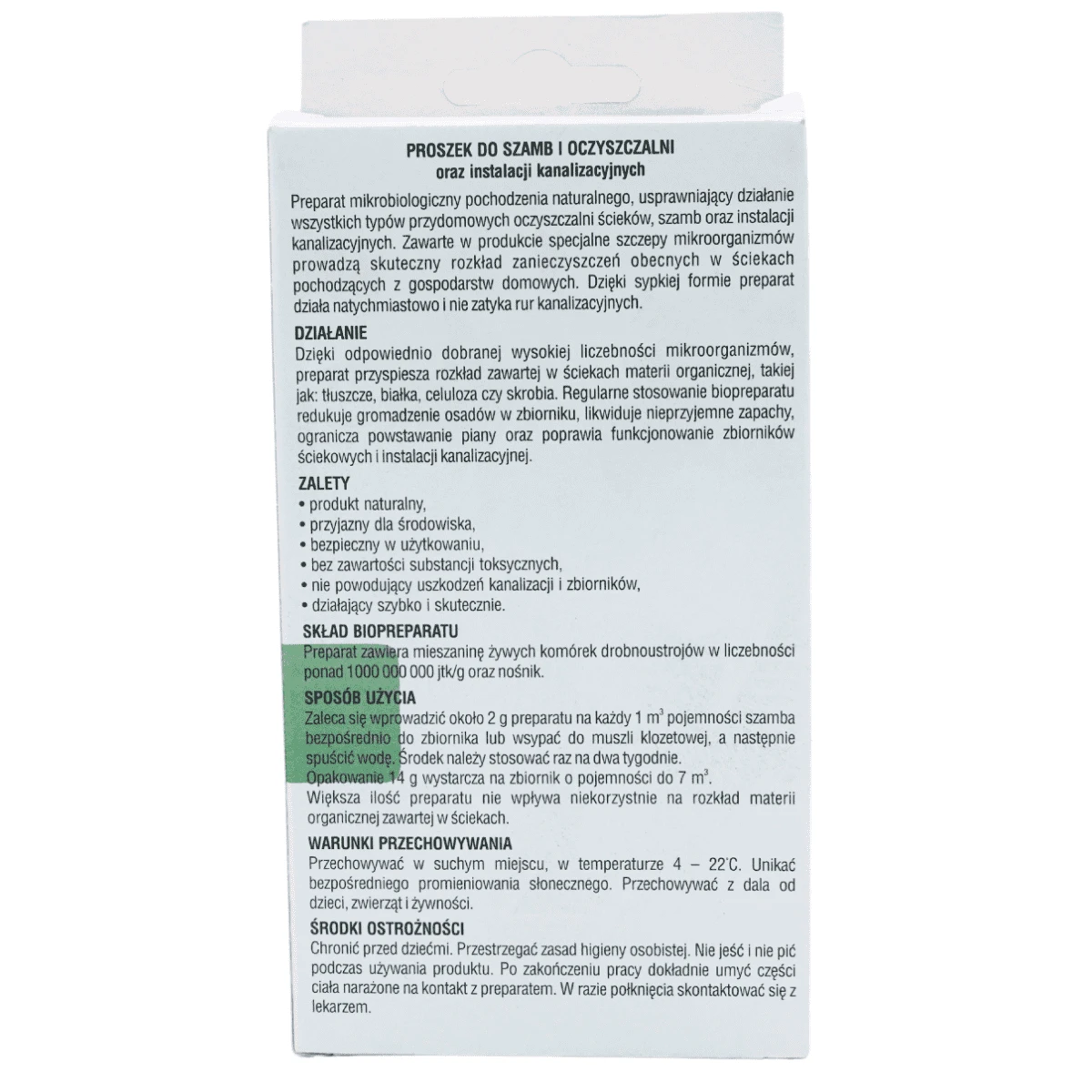 Proszek do szamb i oczyszczalni to mikrobiologiczny preparat pochodzenia naturalnego, który usprawnia działanie wszystkich typów przydomowych oczyszczalni ścieków, szamb oraz instalacji kanalizacyjnych. Dzięki zawartości specjalnie dobranych szczepów mikroorganizmów skutecznie rozkłada zanieczyszczenia organiczne pochodzące z gospodarstw domowych.