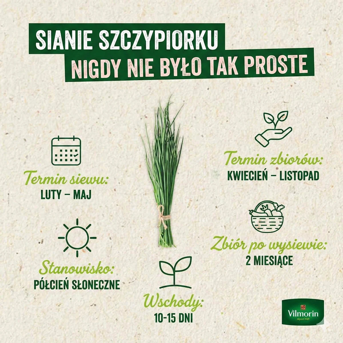 Szczypiorek Czosnkowy, to odmiana o wyraźnym aromacie czosnku. Nadaje się do uprawy w doniczkach i pojemnikach. Szczypiorek czosnkowy odporny jest na mróz, zawiera witaminę C i sole mineralne. Pędy szczypiorku należy ścinać na wysokości 5 cm od poziomu ziemi, aby ułatwić odrost.