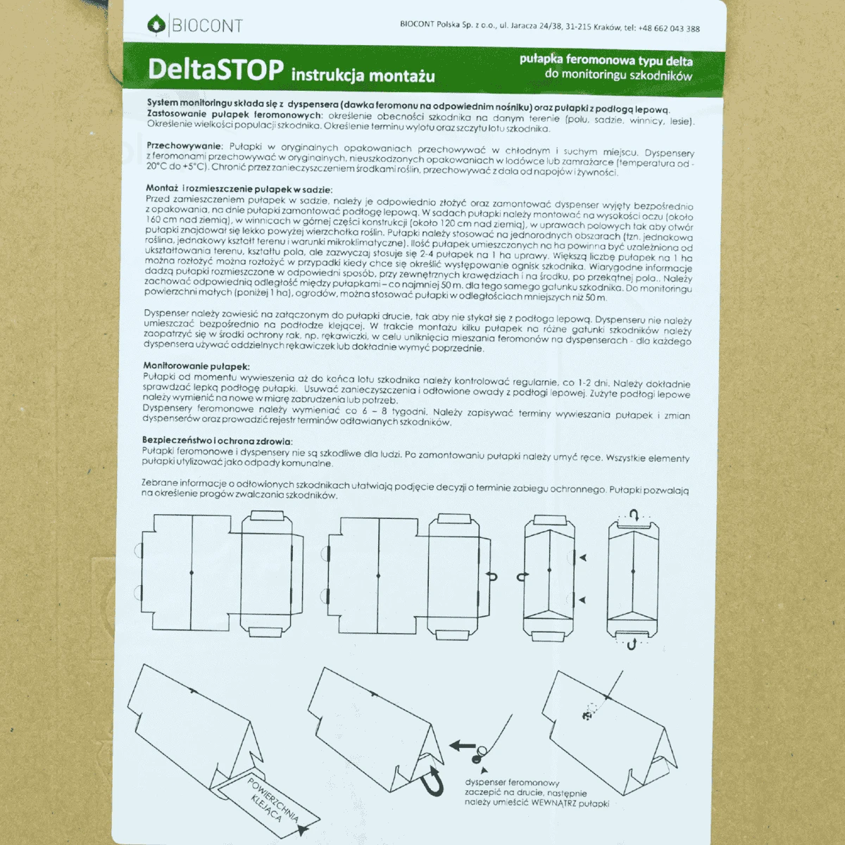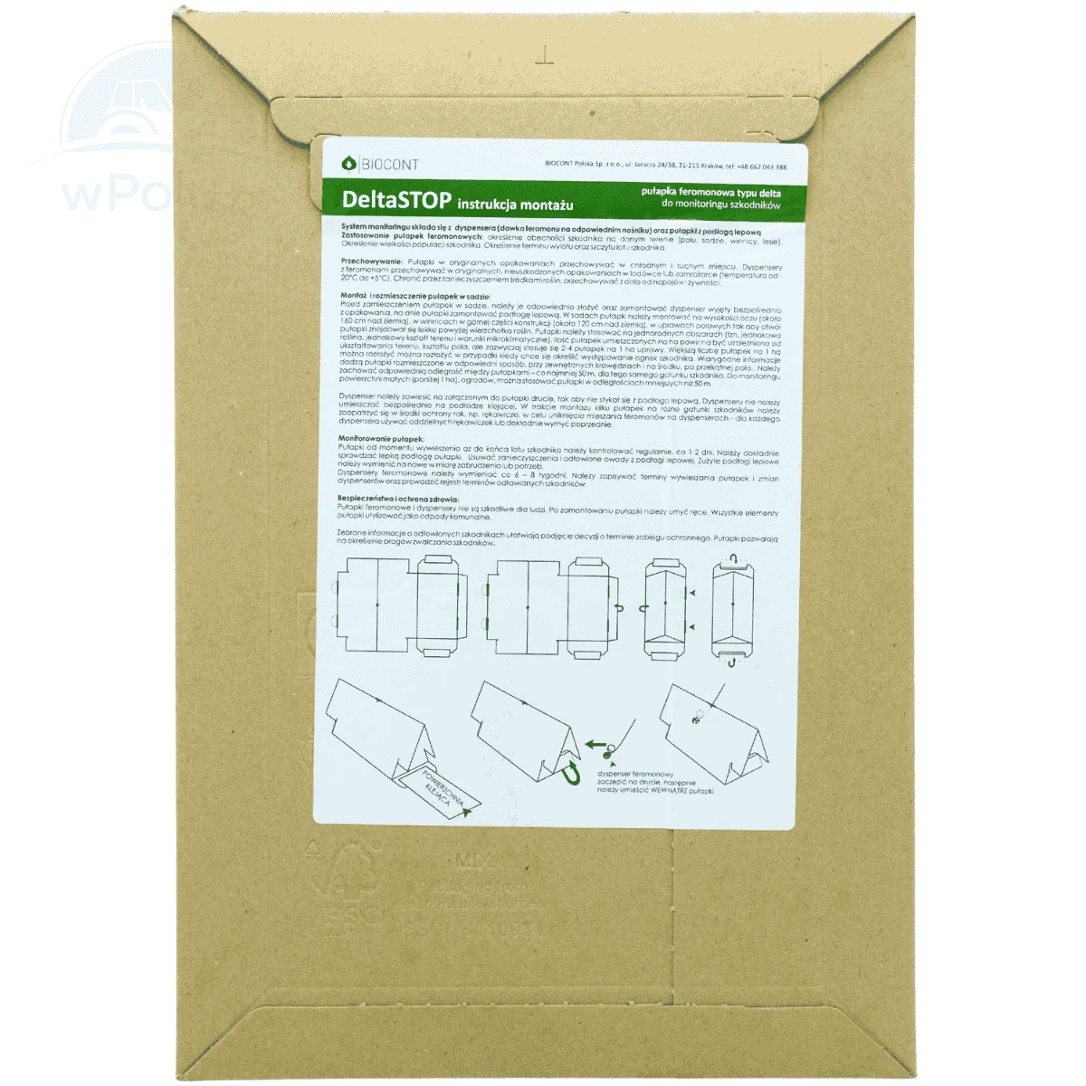 Zestaw zawiera pułapkę typu delta, 1 dyspenser feromonowy dopasowany do cyklu jednopokoleniowego oraz 4 podłogi lepowe. Działanie opiera się na selektywnym feromonie wabiającym samce, co umożliwia wczesne wykrycie szkodnika i szybkie podjęcie decyzji o zabiegach ochronnych.