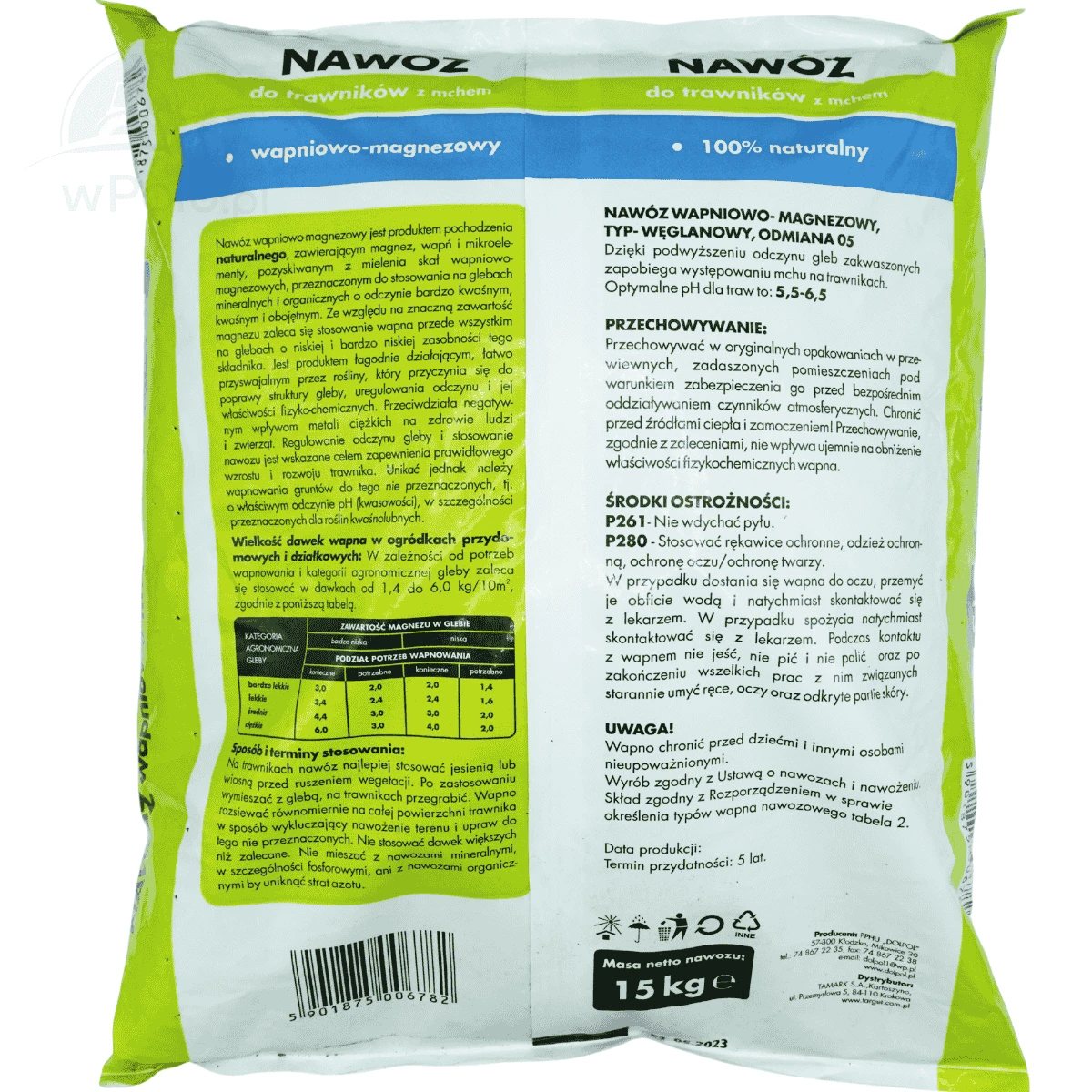 NAWÓZ DO TRAWNIKÓW Z MCHEM WAPNIOWO-MAGNEZOWY 15 KG