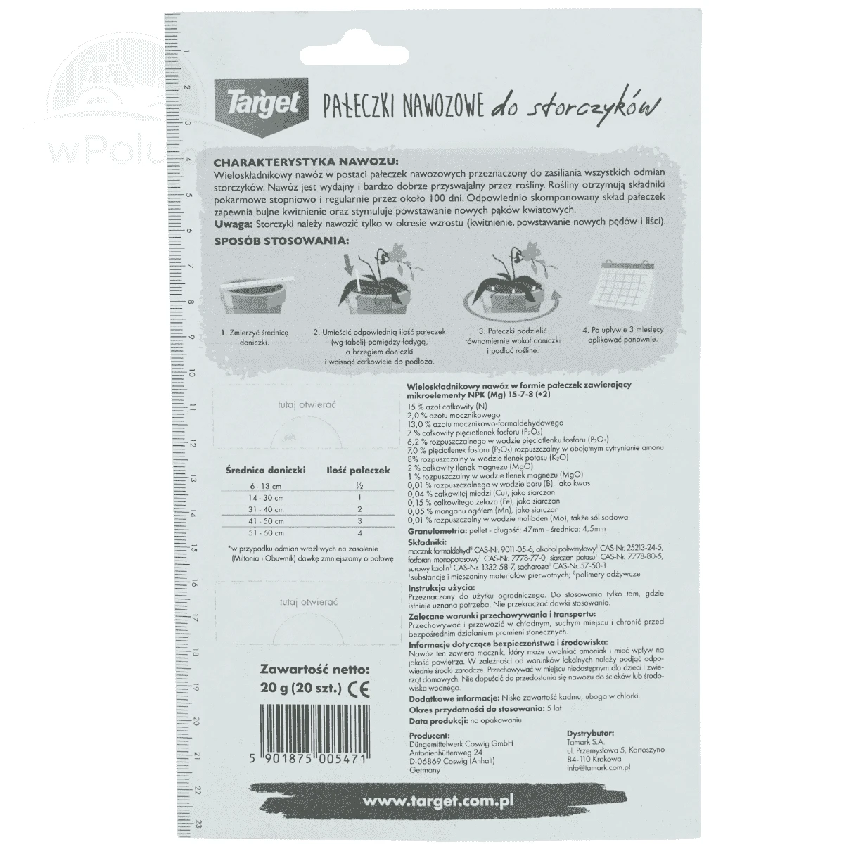 Nawóz w postaci pałeczek przeznaczony jest do nawożenia wszystkich odmian storczyków. Storczyki należy nawozić tylko w okresie wzrostu.