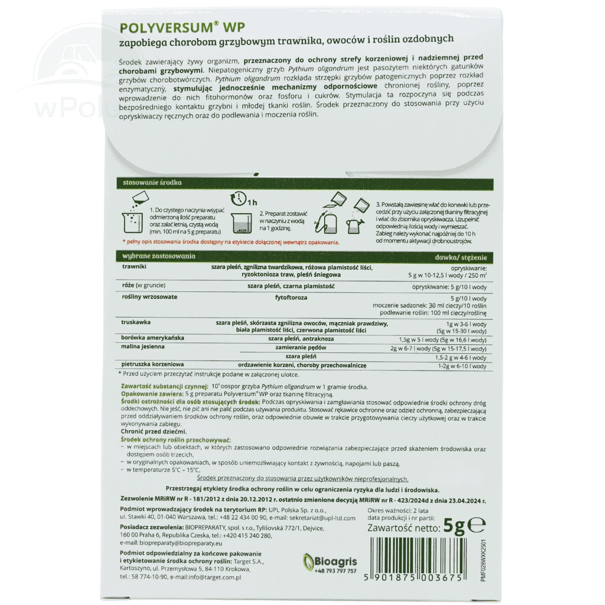 Polyversum WP od firmy Target to biologiczny preparat ochronny o działaniu zapobiegawczym, przeznaczony do walki z chorobami grzybowymi roślin ozdobnych, warzywnych, sadowniczych oraz trawników.