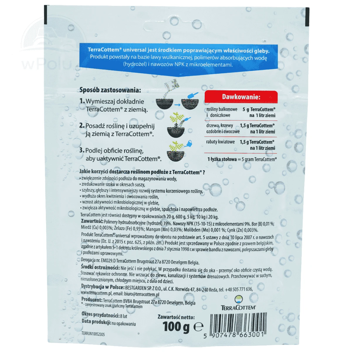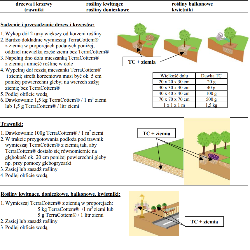 Produkt TerraCottem® Universal przeznaczony jest do stosowania w ogrodach, na działkach, trawnikach, balkonach oraz w donicach. Sprawdza się podczas sadzenia, przesadzania, siania i pielęgnacji zieleni. Wymieszany z podłożem, działa długotrwale – ogranicza częstotliwość podlewania nawet o 75% i nawożenia o około 60%. To kompleksowe rozwiązanie, które poprawia jakość gleby, wspiera rozwój systemu korzeniowego i zapewnia bujny, zdrowy wzrost roślin.