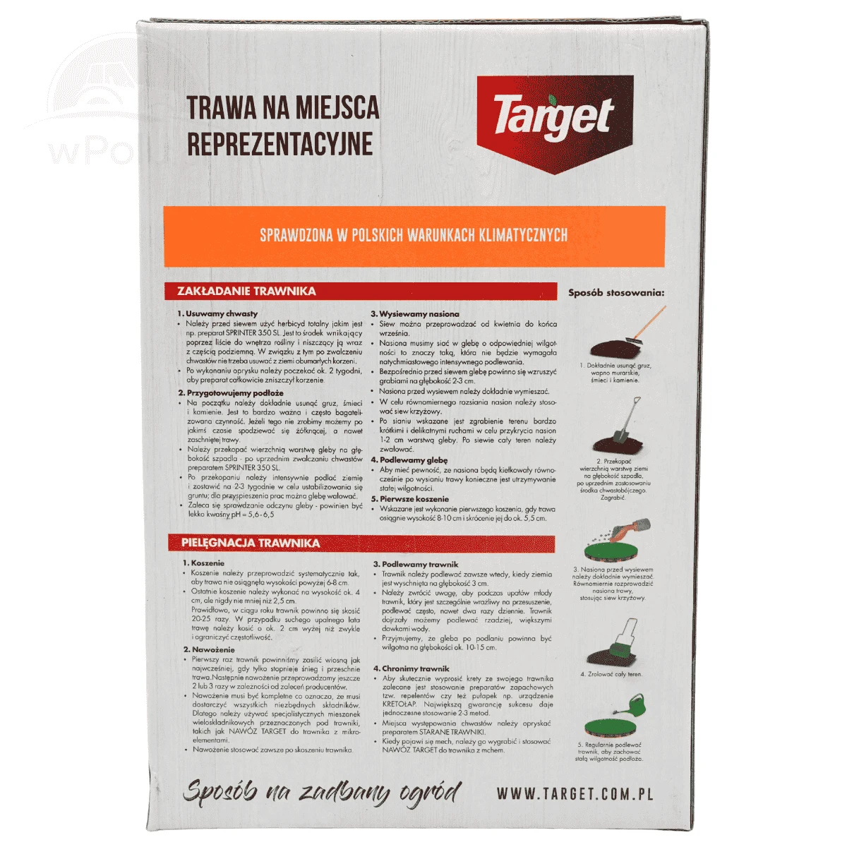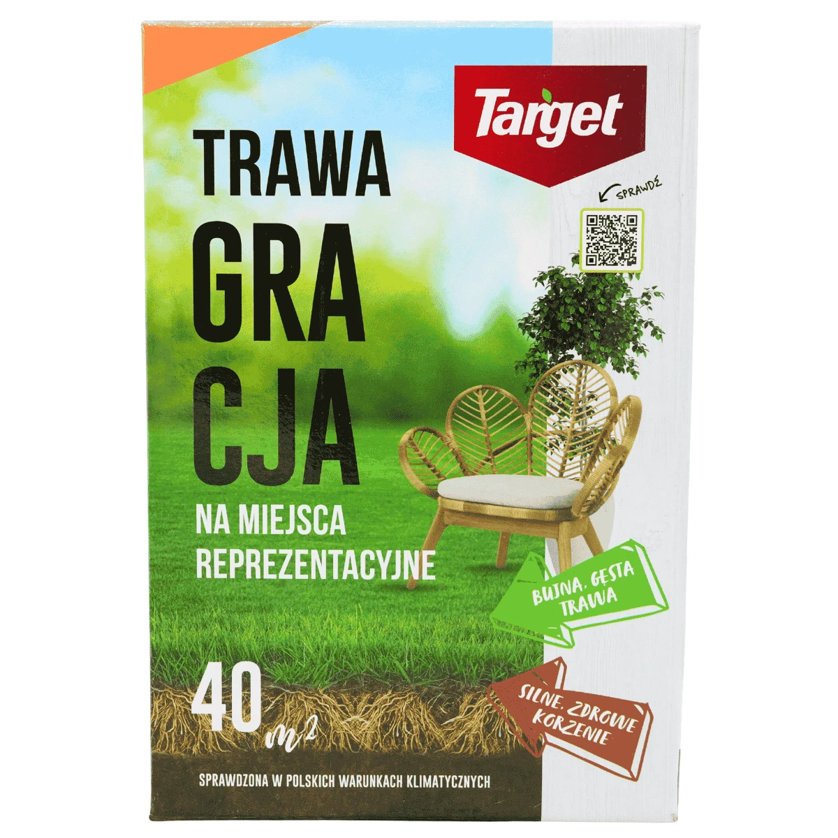 Trawa Gracja od Target to mieszanka traw gazonowych przeznaczona do zakładania trawników w ogrodach i przy domach, w tym na powierzchniach częściowo zacienionych. Dobór odmian o wąskim liściu i małym przyroście masy zielonej sprzyja utrzymaniu eleganckiego wyglądu przy mniejszej częstotliwości koszenia. Rośliny rosną równomiernie, tworząc zwartą darń o intensywnie zielonej barwie i efekcie „miękkiego dywanu”.