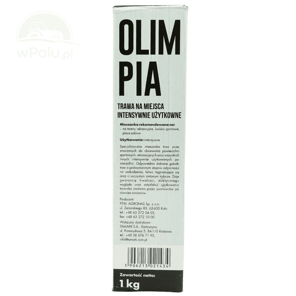 Specjalistyczna mieszanka nasion traw gazonowych do obsiewania powierzchni intensywnie użytkowanych, takich jak boiska sportowe, place zabaw i inne tereny rekreacyjne. Mieszanka zawiera trawy o podwyższonym stopniu odporności na uszkodzenia, łatwo się regenerujących. Trawa Olimpia odznacza się intensywną soczystą zieloną barwą, estetycznym wyglądem i trwałością. Odmiany traw w mieszance sprawdzone są w warunkach klimatycznych Polski.