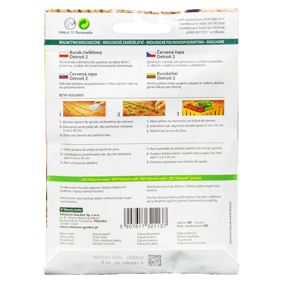 Burak ćwikłowy 'Detroit 2' to ceniona odmiana o kulistych korzeniach i intensywnie czerwonym, soczystym miąższu. Doskonale sprawdza się do spożycia na surowo, wyciskania świeżych soków, na zbiór letni i jesienny, a także do przechowywania zimowego. Okres wegetacji wynosi średnio 55-58 dni. Nasiona tej odmiany pochodzą z certyfikowanych upraw ekologicznych, co zapewnia ich wysoką jakość i naturalne pochodzenie.