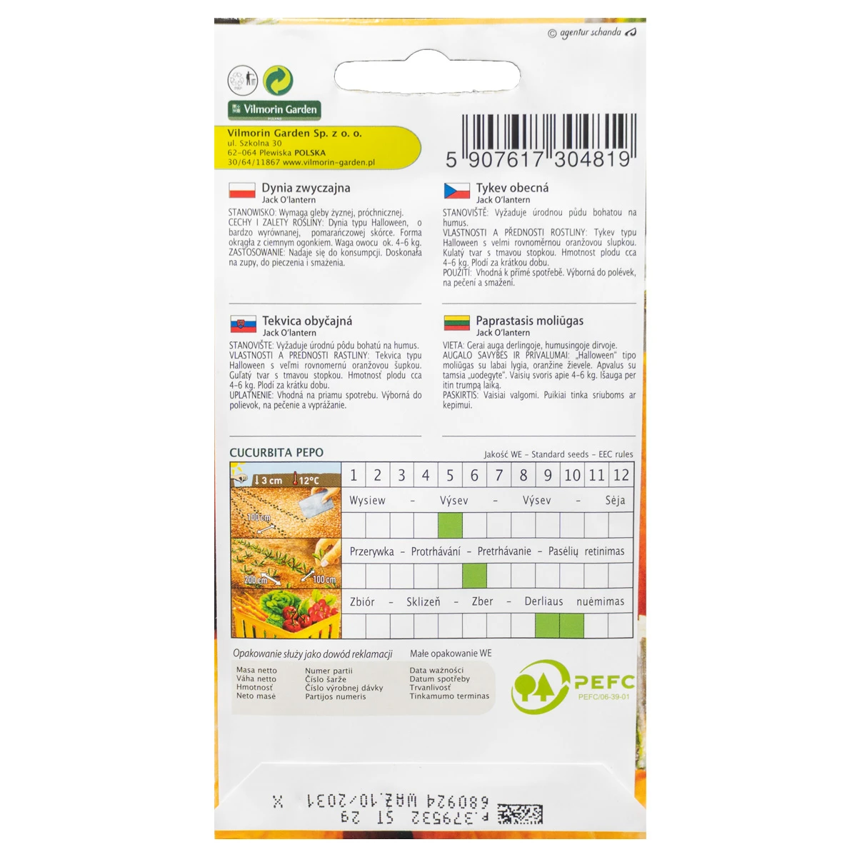 Dynia Jack O' Lantern to odmiana typu Halloween o gładkiej, pomarańczowej skórce i miąższu, osiągająca wagę 4-6 kg. Doskonała do zup, pieczenia i smażenia. Owoce można przechowywać do 4 miesięcy w suchym, niezbyt zimnym miejscu. Nadaje się zarówno do uprawy amatorskiej, jak i profesjonalnej. Wymaga żyznej, próchniczej gleby.