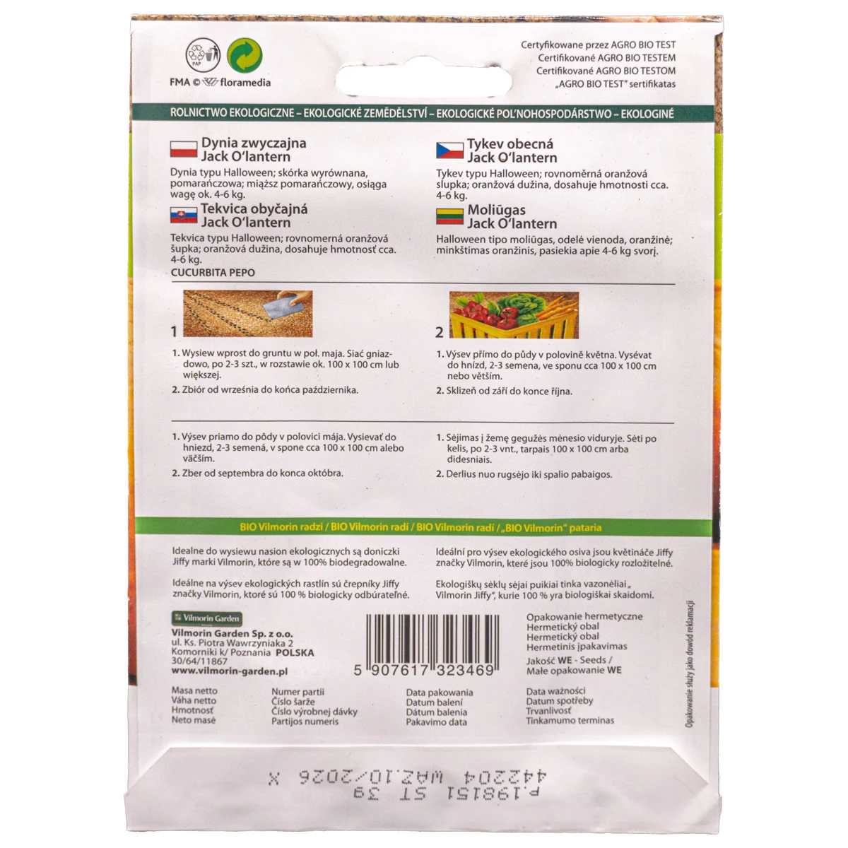 Dynia Jack O' Lantern to odmiana typu Halloween o gładkiej, pomarańczowej skórce i miąższu, osiągająca wagę 4-6 kg. Doskonała do zup, pieczenia i smażenia. Owoce można przechowywać do 4 miesięcy w suchym, niezbyt zimnym miejscu. Nadaje się zarówno do uprawy amatorskiej, jak i profesjonalnej. Wymaga żyznej, próchniczej gleby.