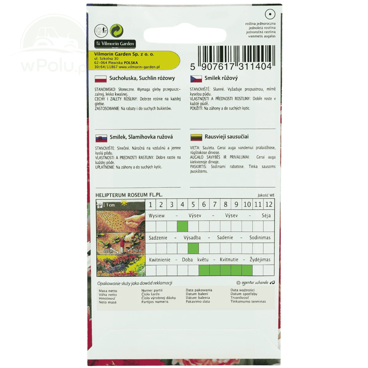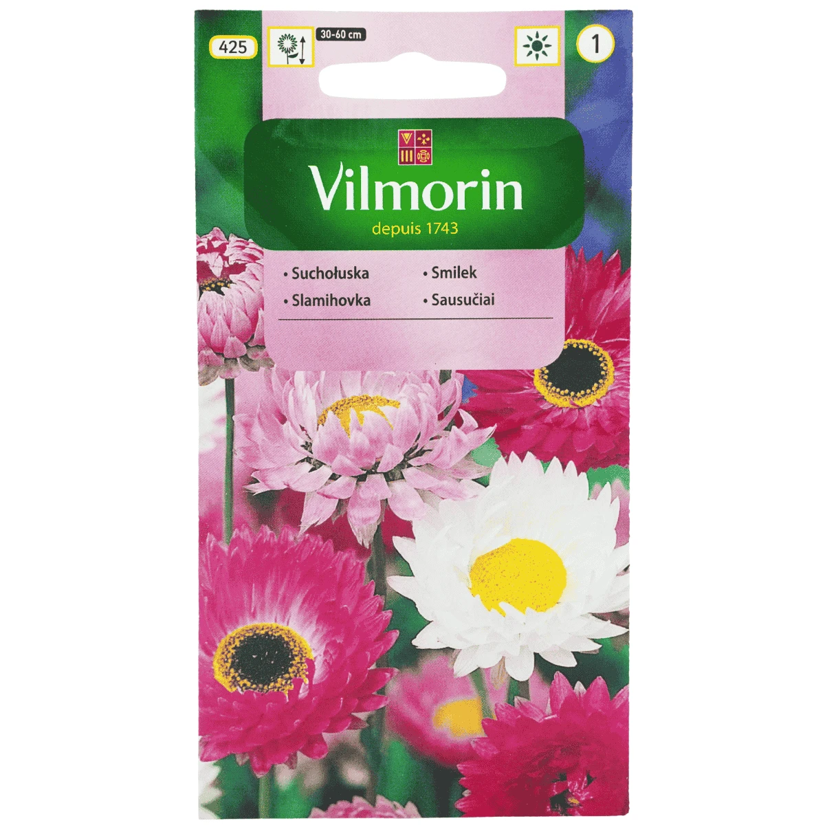 Suchołuska mieszanka (Helipterum roseum) to jednoroczna roślina ozdobna przeznaczona do uprawy w gruncie, ceniona za dekoracyjne, papierowe kwiatostany w odcieniach różu, bieli oraz czerwieni z kontrastowym środkiem. Roślina osiąga wysokość około 30–60 cm i charakteryzuje się wzniesionym pokrojem oraz cienkimi, ale wytrzymałymi pędami. Kwiaty zachowują kolor i kształt po zasuszeniu, dzięki czemu są chętnie wykorzystywane w kompozycjach florystycznych i suchych bukietach.