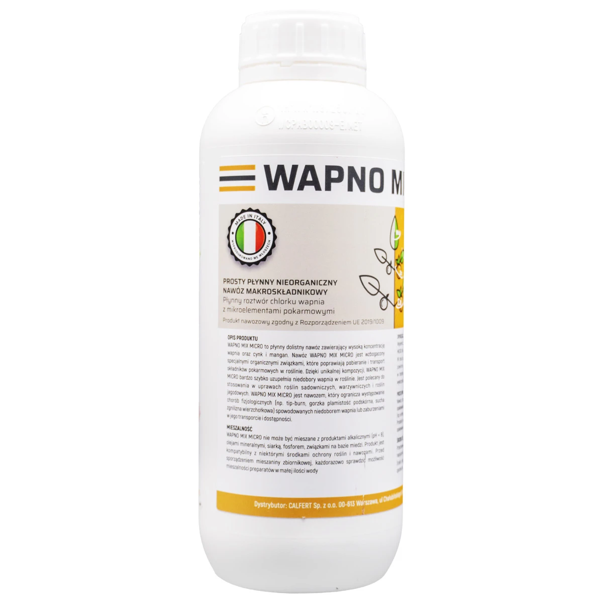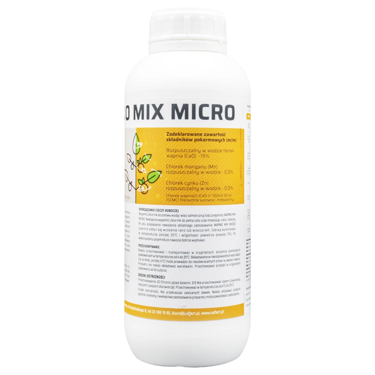 Wapno Mix Micro jest płynnym nawozem dolistnym z wysoką koncentracją wapnia oraz cynkiem i manganem. Nawóz wzbogacony jest związkami organicznymi, które wpływają na poprawę pobierania i transportu składników pokarmowych w roślinie. Unikalna kompozycja nawozu pozwala bardzo szybko uzupełnić niedobory wapnia w roślinie. Ogranicza występowanie chorób fizjologicznych, takich jak tip-burn, gorzka plamistość podskórna czy sucha zgnilizna wierzchołkowa, które powodowane są niedoborem wapnia lub zaburzeniami w jego transporcie i dostępności. Wapno Mix Micro polecany jest do nawożenia roślin sadowniczych, warzywniczych i jagodowych.