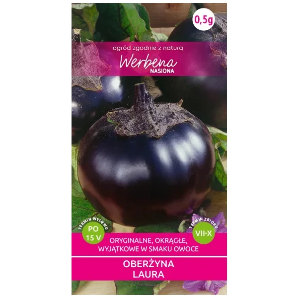 Nasiona Oberżyny Laura o Okrągłych Ciemnofioletowych Owocach – Werbena 0,5 g