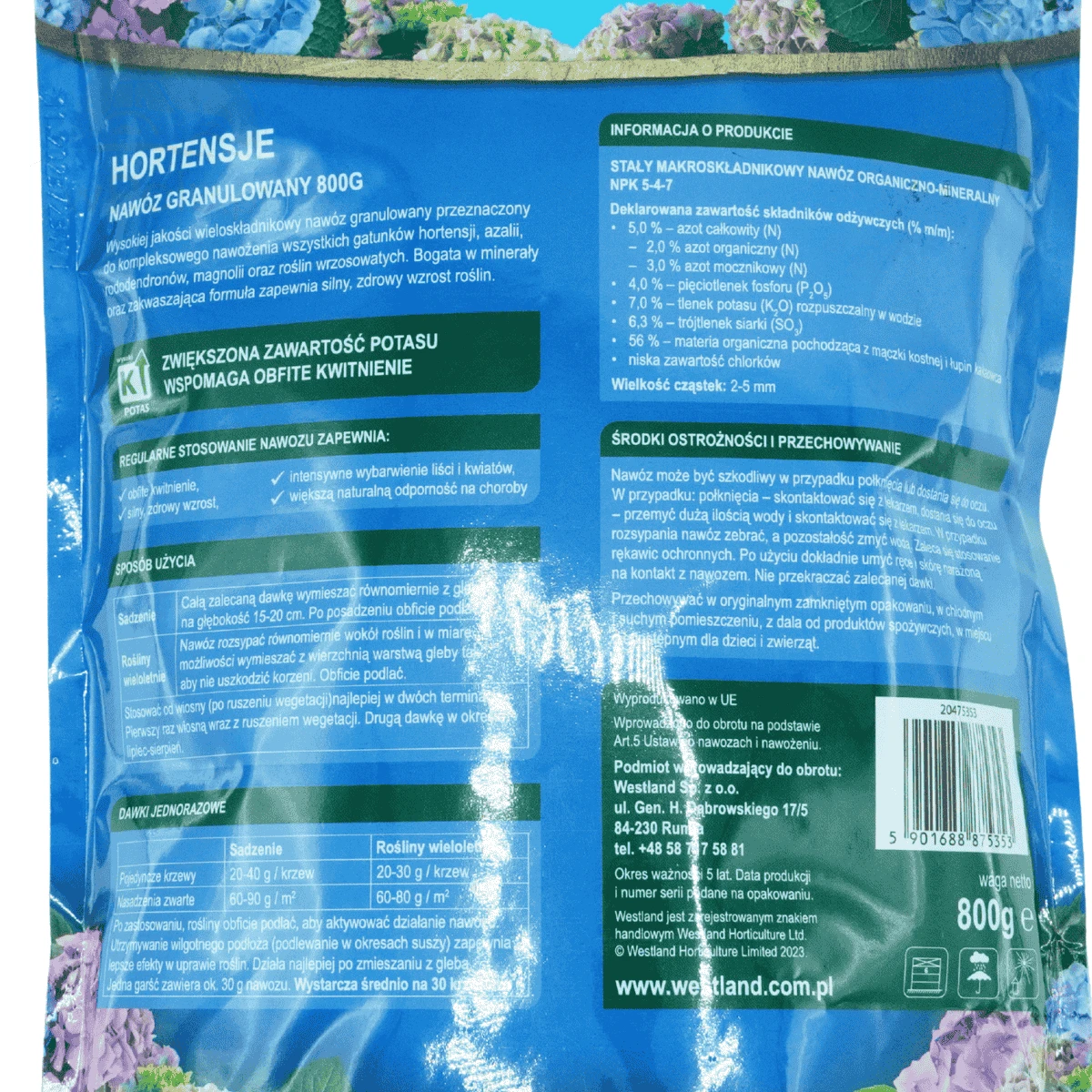 Z uwagi na swoje zakwaszające działanie nawóz pomaga utrzymać optymalne pH gleby, co ma ogromne znaczenie dla hortensji, rododendronów czy azalii, które najlepiej rosną w środowisku lekko kwaśnym. Dzięki temu produkt jest idealnym wyborem zarówno dla młodych roślin, jak i tych wieloletnich, wymagających regularnego nawożenia.