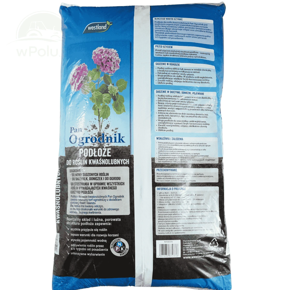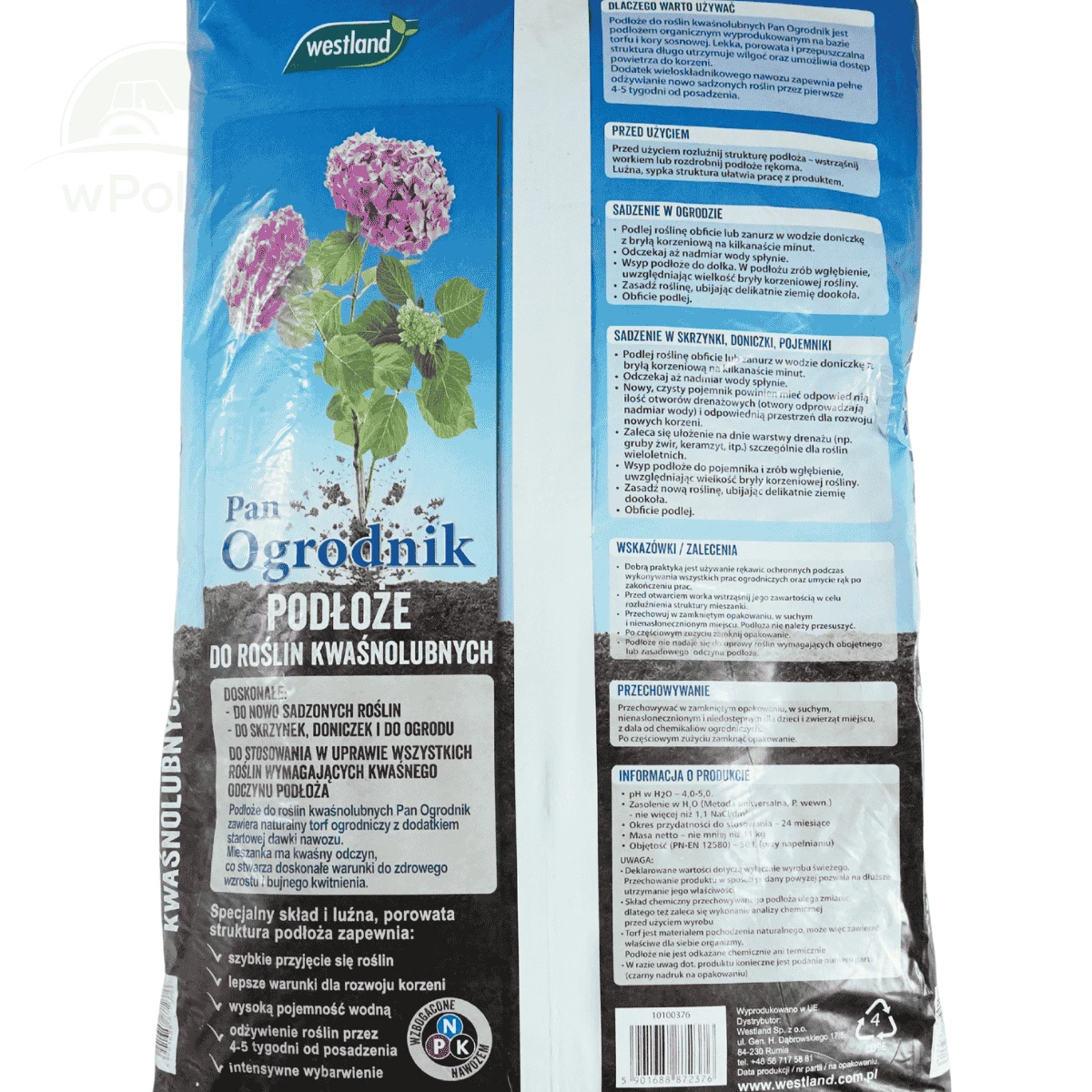 Podłoże Pan Ogrodnik marki Westland to starannie skomponowana mieszanka torfu wysokiego o różnym stopniu rozkładu, wzbogacona o startową dawkę nawozu. Dzięki lekkości, porowatości i wysokiej przepuszczalności zapewnia optymalne warunki do wzrostu roślin kwaśnolubnych.