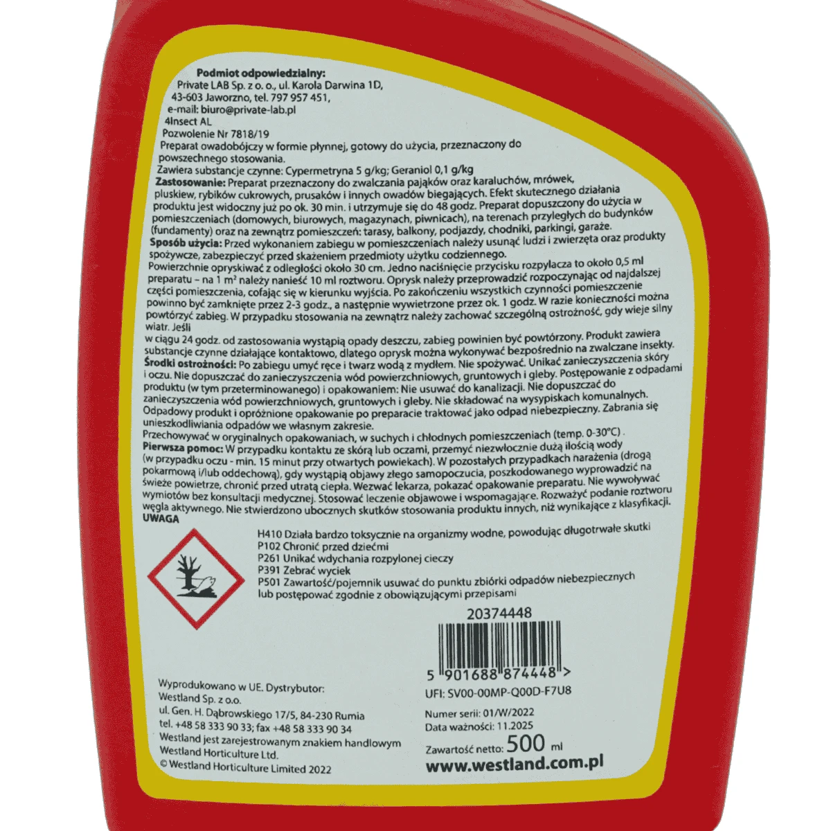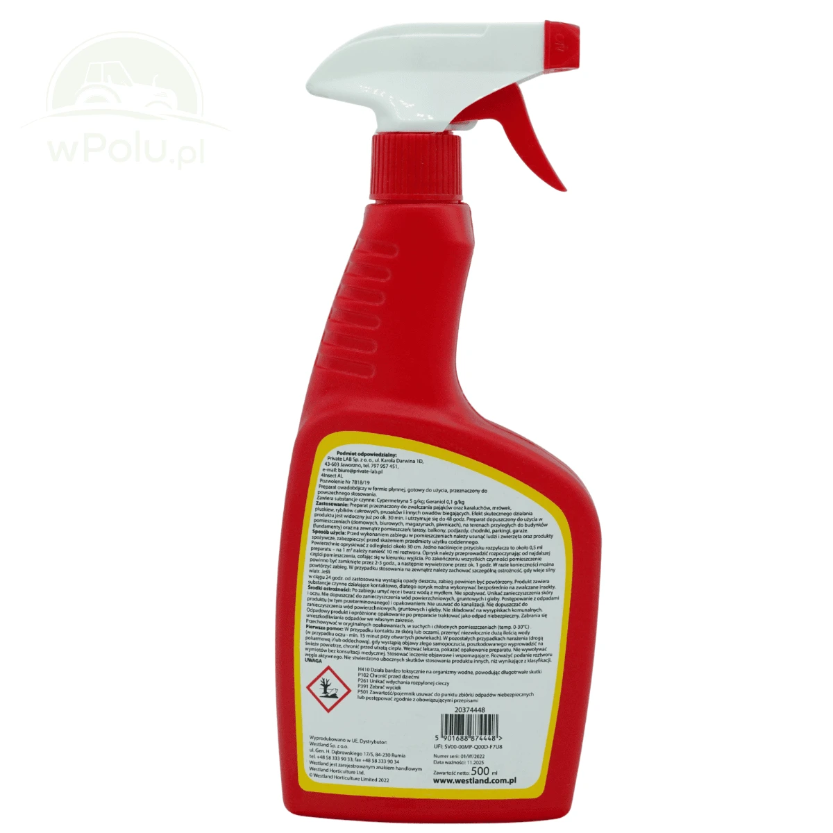 Resolva RTU marki Westland to gotowy do użycia spray przeznaczony do zwalczania owadów biegających takich jak mrówki, pająki, karaluchy, prusaki, pluskwy oraz rybiki cukrowe. Skutecznie działa w pomieszczeniach oraz na zewnątrz, eliminując szkodniki w domu, na balkonie, tarasie, w garażu czy ogrodzie.