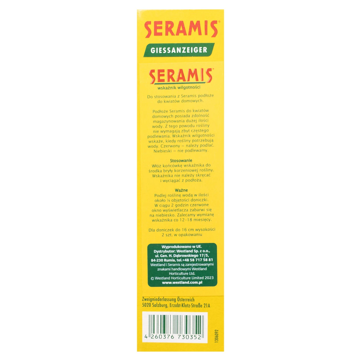 Wskaźnik wilgotności Seramis marki Westland to innowacyjne narzędzie, które ułatwia precyzyjne monitorowanie poziomu wilgotności podłoża. Dzięki niemu zawsze będziesz wiedzieć, kiedy należy podlać rośliny, unikając zarówno przesuszenia, jak i przelania. Idealny dla miłośników roślin doniczkowych, ogrodowych oraz hodowców roślin wymagających dokładnej kontroli nawodnienia.