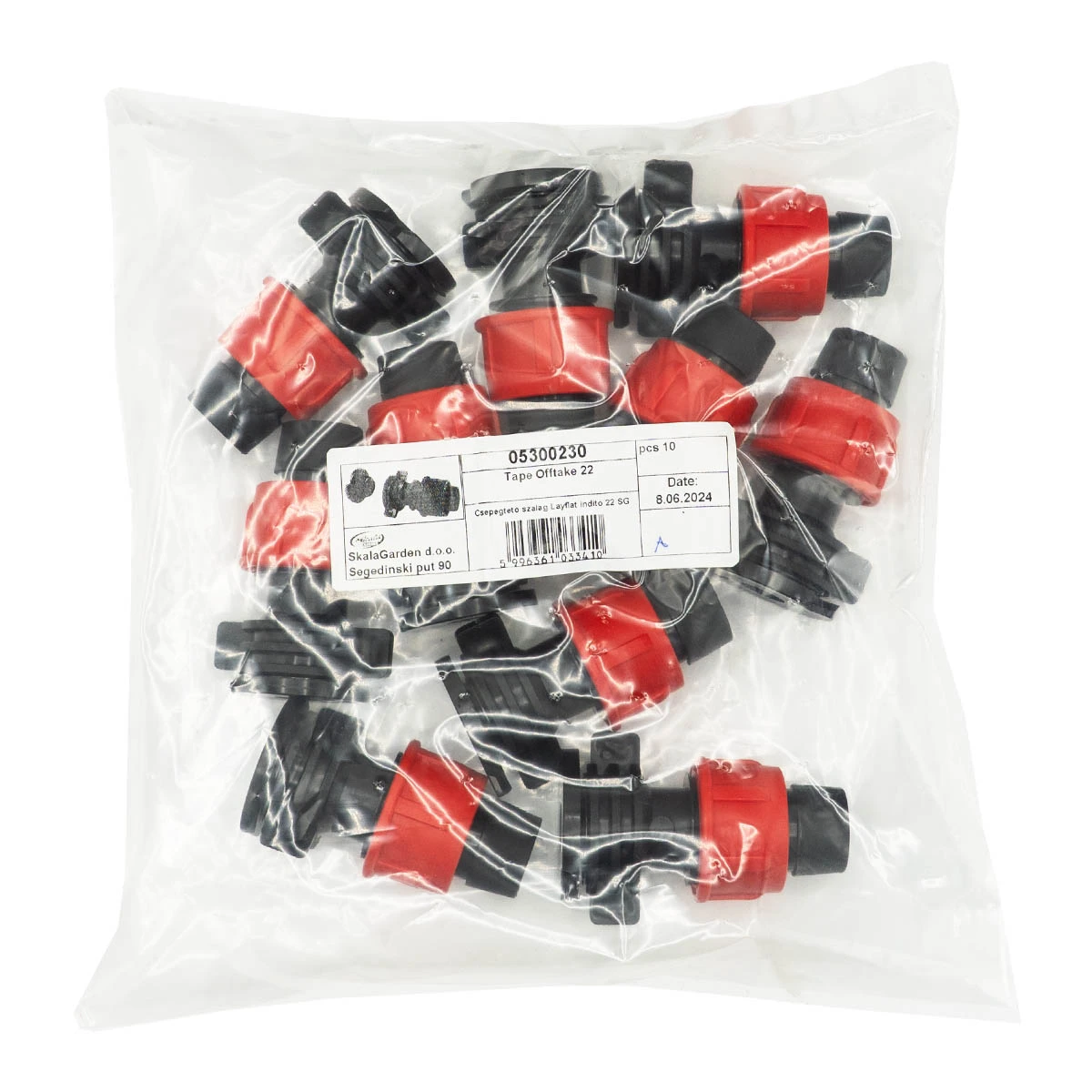 Zapewnia kompletne łączenie linii LayFlat z taśmami kroplującymi typu Tape 22 w systemach nawadniających.