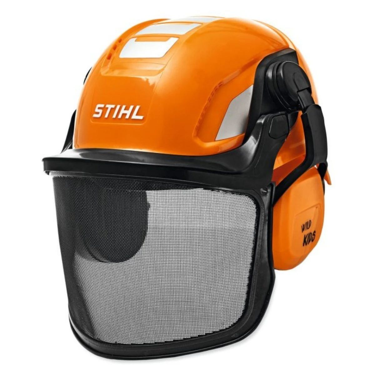 Hełm zabawkowy STIHL dla dzieci to wierna replika profesjonalnego hełmu ochronnego używanego przez pilarzy i drwali. Wykonany z trwałego tworzywa ABS kask ma pomarańczową czaszę z charakterystycznym logo STIHL, czarną ramkę oraz siatkowy wizjer, który można swobodnie unosić. Całość uzupełniają składane nauszniki w kolorze pomarańczowym, dzięki czemu kask wygląda jak prawdziwy element wyposażenia operatora pilarki – idealny do zabawy w pilarza
