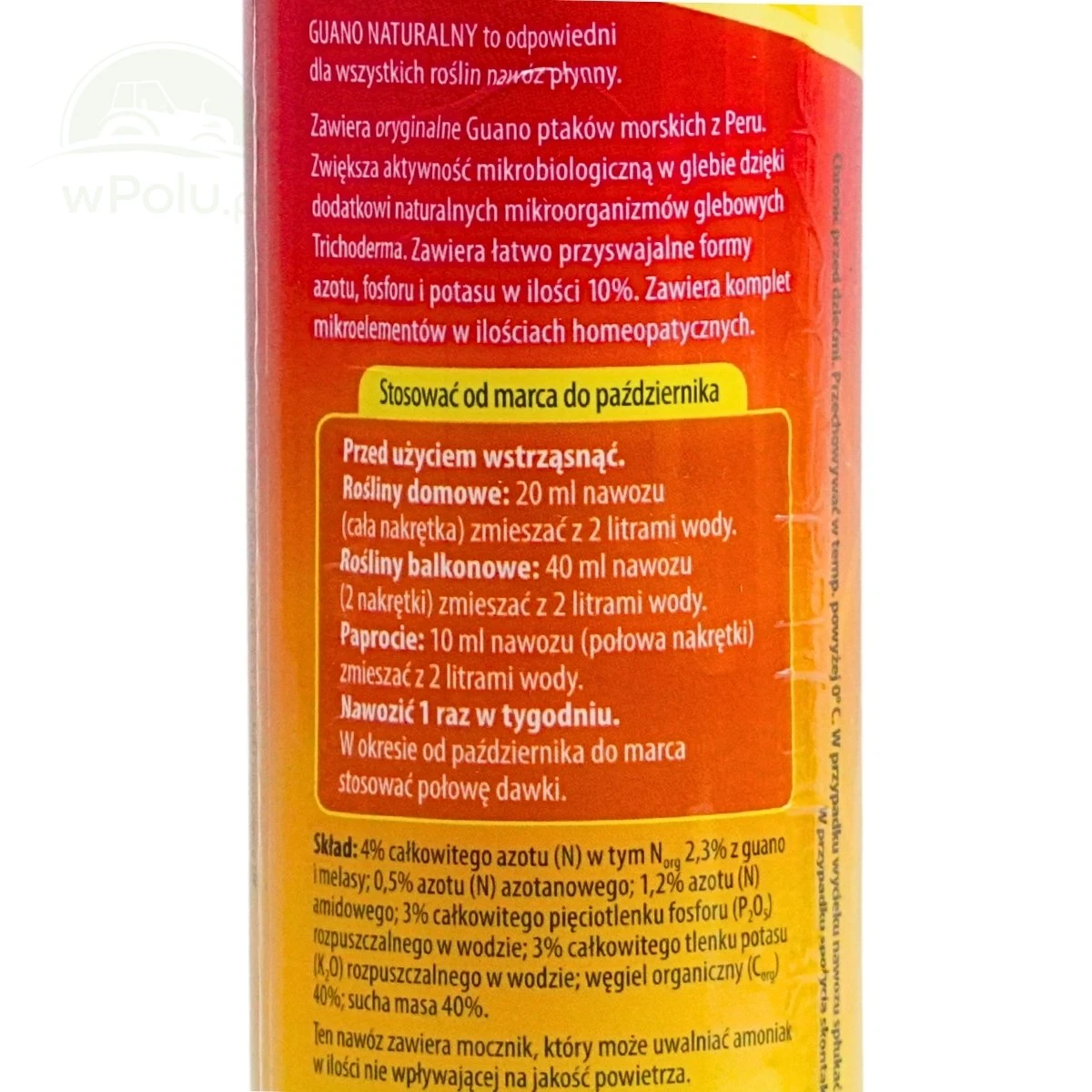 PaprGuano to wyjątkowy nawóz, który powstaje w wyniku trawienia ryb, takich jak sardela peruwiańska, makrela, sardynka i pejerrey, stanowiących główną dietę ptaków morskich. Te organiczne resztki, dzięki unikalnym warunkom atmosferycznym występującym w regionie, stopniowo przekształcają się w substancję, która jest niezwykle łatwo przyswajalna przez różnorodne gatunki roślin. Guano pochodzące z peruwiańskich wysp jest uznawane za jeden z najlepszych i najpełniejszych dostępnych na świecie nawozów organicznych, charakteryzujący się nie tylko bogactwem składników odżywczych, ale także bardzo korzystnym wpływem na wzrost i rozwój roślin.