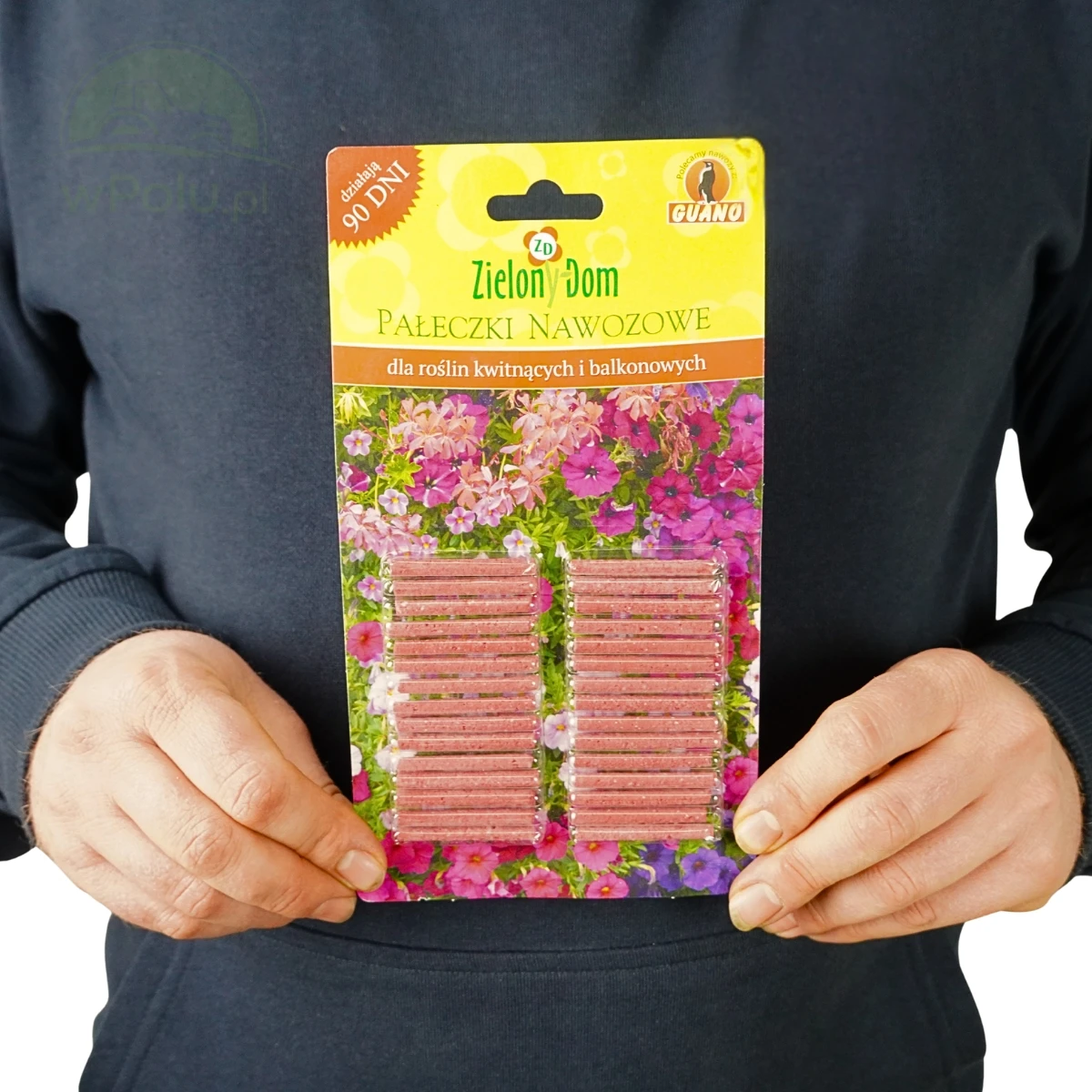 Pałeczki nawozowe do roślin kwitnących to prosty i komfortowy sposób na dbanie o rośliny doniczkowe i balkonowe, szczególnie podczas ich okresu kwitnienia. Te pałeczki zapewniają stopniowe uwalnianie niezbędnych substancji odżywczych dostosowanych do indywidualnych potrzeb rośliny, regulowane przez częstotliwość podlewania. Dzięki temu minimalizują ryzyko przenawożenia roślin. Produkt zawiera mikro- i makroelementy, takie jak potas, azot i fosfor, połączone za pomocą naturalnego Guano. Pałeczki do roślin kwitnących wspierają zdrowy wzrost, gwarantują obfite kwitnienie i soczyste wybarwienie kwiatów. Regularne ich stosowanie przyczynia się również do poprawy struktury gleby oraz zwiększenia pojemności wodnej podłoża. Jedna pałeczka nawozi roślinę przez okres 3 miesięcy.