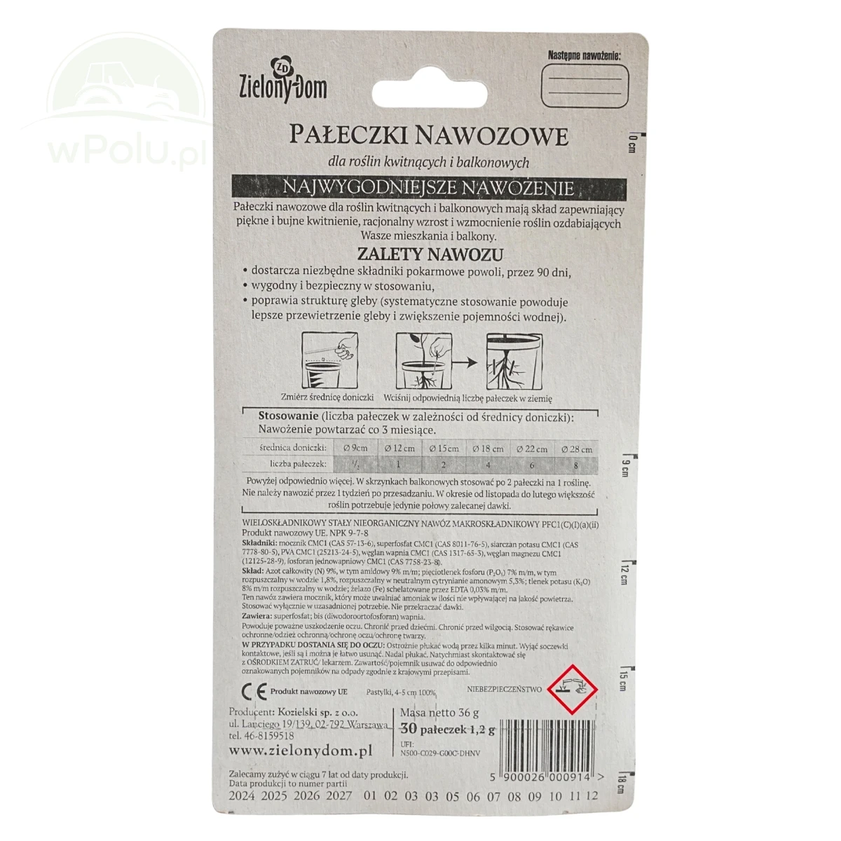ZIELONY DOM PAŁECZKI DO KWITNĄCYCH 30 SZT