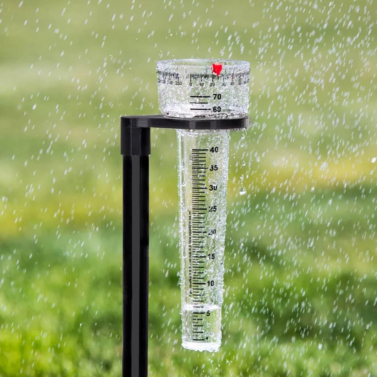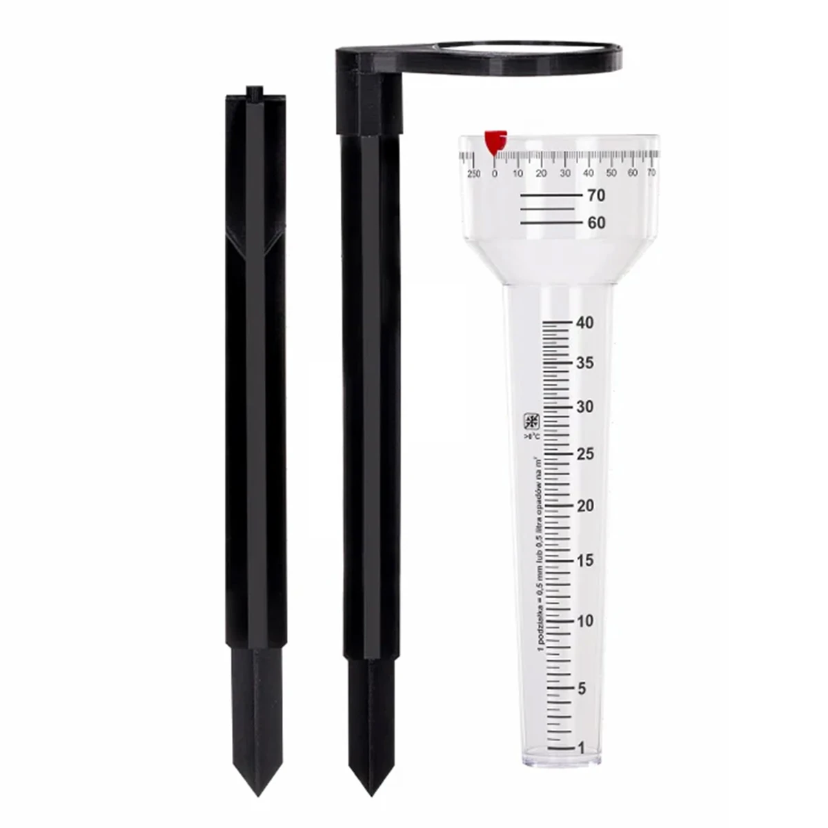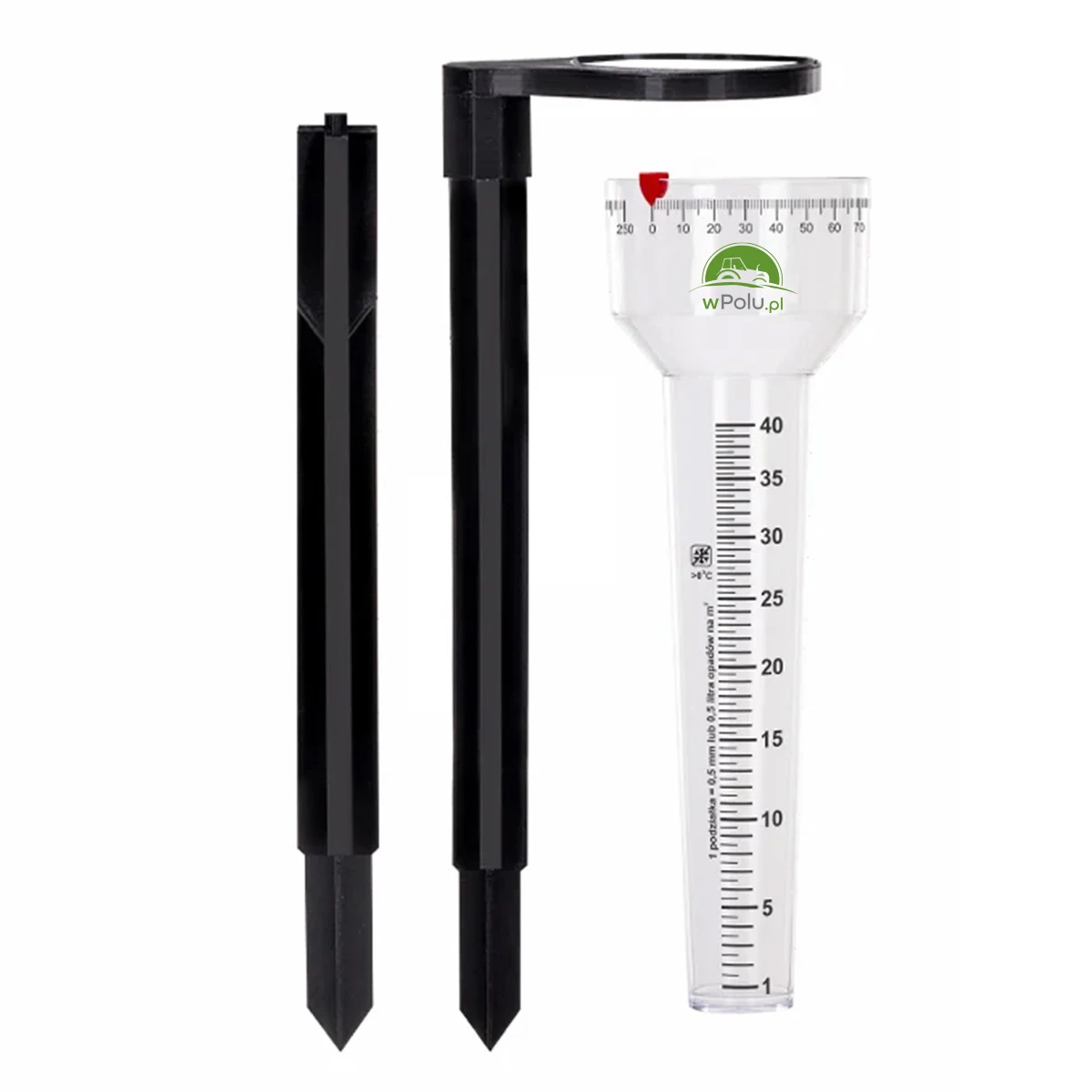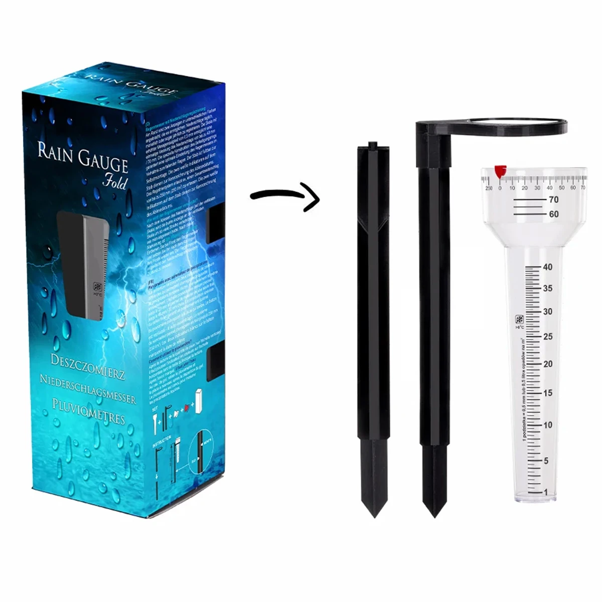 Kompletny deszczomierz Rain Fold, miernik opadu deszczu, wskaźnik opadu wykonany z polistyrenu z plastikową obejmą w komplecie. Wyposażony jest w opatentowany sumator opadów, który pozwala dowolnie sumować opad codzienny, tygodniowy, miesięczny.