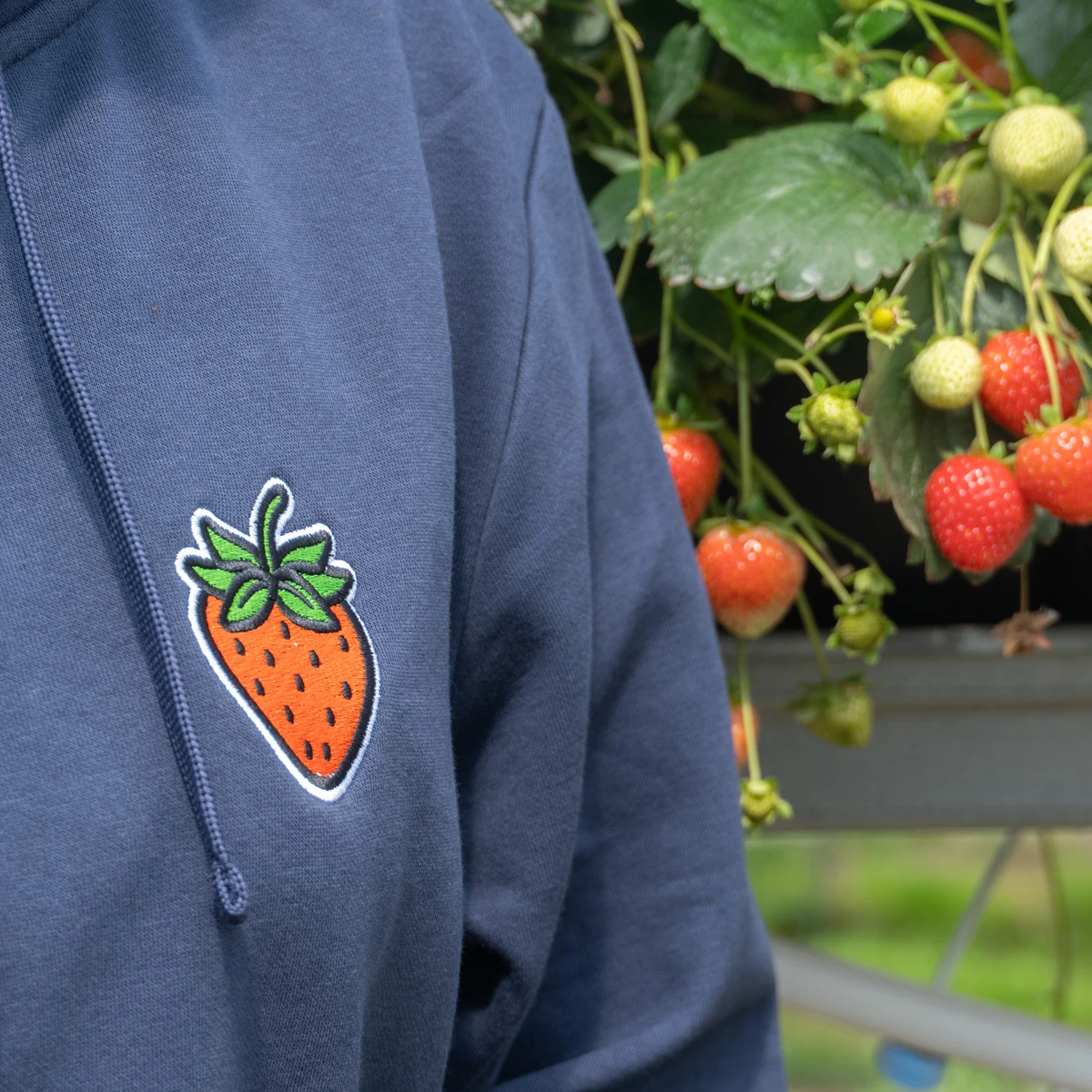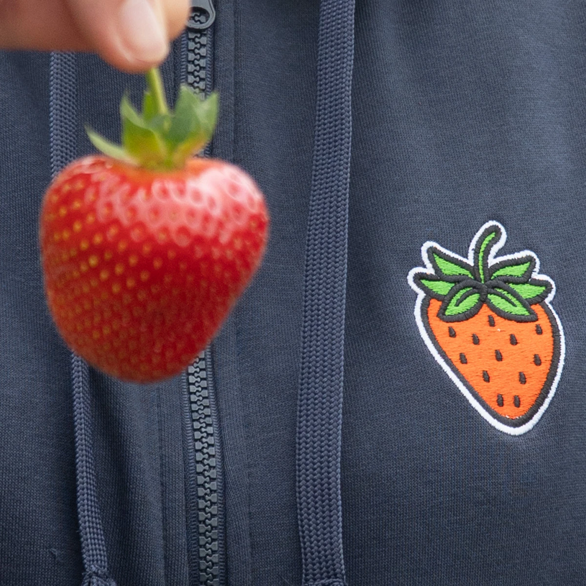 Przód: wyhaftowana truskawka