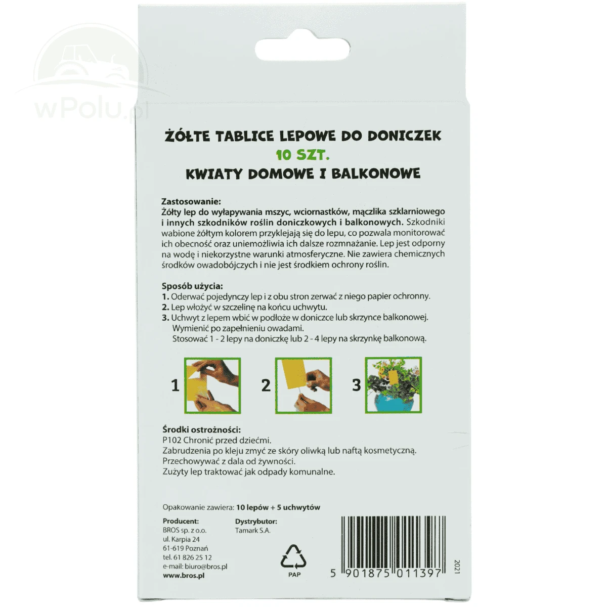Żółte tablice lepowe to innowacyjne narzędzie do monitorowania oraz ograniczania populacji szkodliwych owadów, takich jak mszyce, mączliki, miniarki i inne, które mogą występować w uprawach roślin warzywnych, owocowych oraz ozdobnych. Produkt ten jest gotowy do użycia od razu po zakupie i charakteryzuje się dużą skutecznością w odławianiu szkodników. Ważną cechą żółtych tablic lepowych jest brak substancji chemicznych i środków owadobójczych w ich składzie. Produkt jest całkowicie bezpieczny dla roślin, owoców i warzyw, a także dla ludzi. Tablice są również odporne na niekorzystne warunki atmosferyczne, dzięki czemu mogą być używane przez cały sezon uprawy.